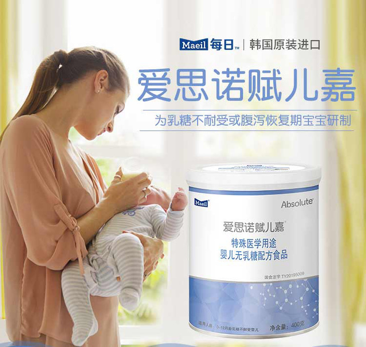 Maeil每日爱思诺赋儿嘉无乳糖婴幼儿特殊配方奶粉400g乳糖不耐受【每日乳业】