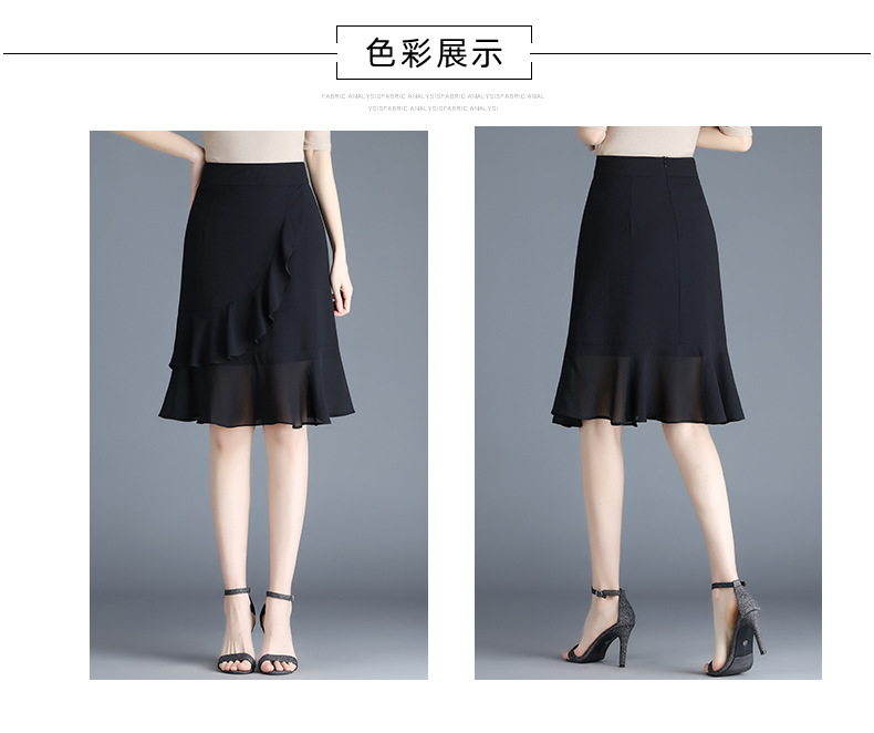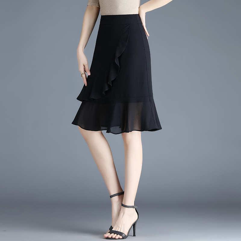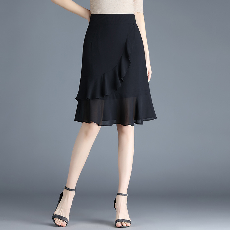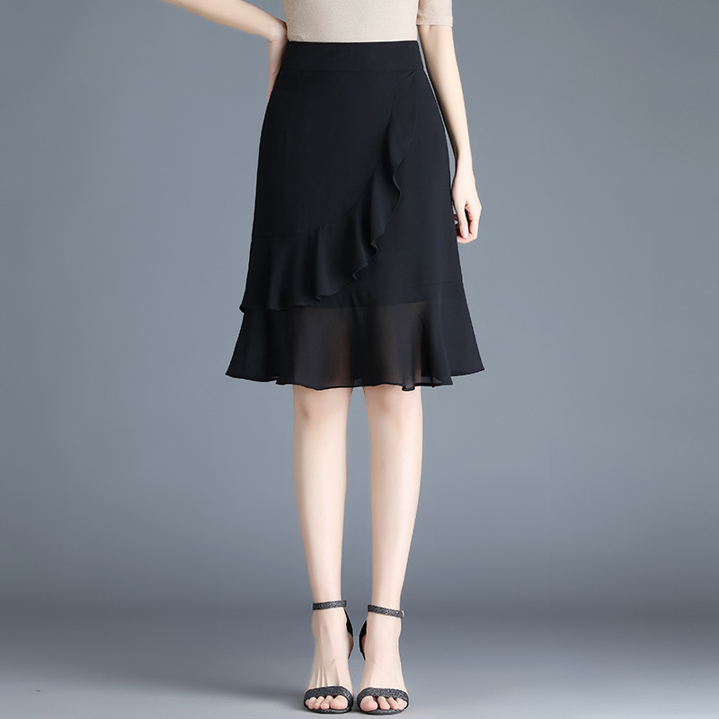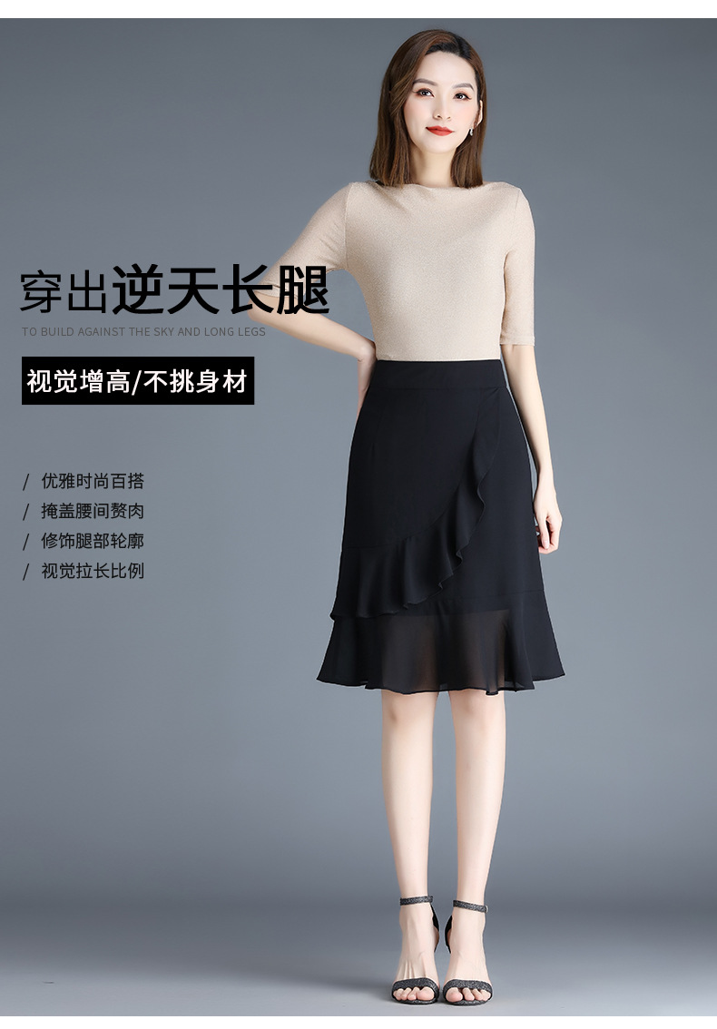 黑色雪纺短裙半身裙女夏季2022新款裙子高腰显瘦a字鱼尾裙包臀裙 AL89789