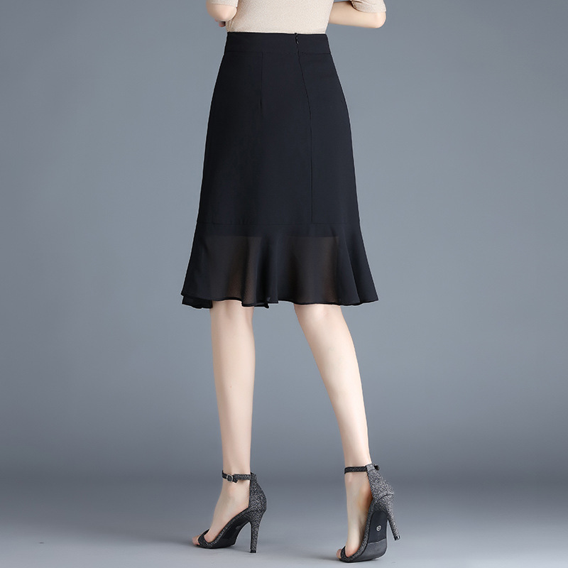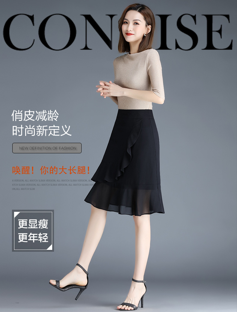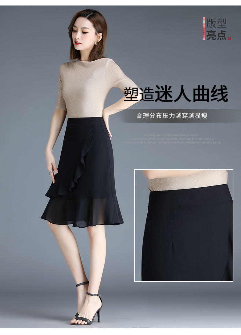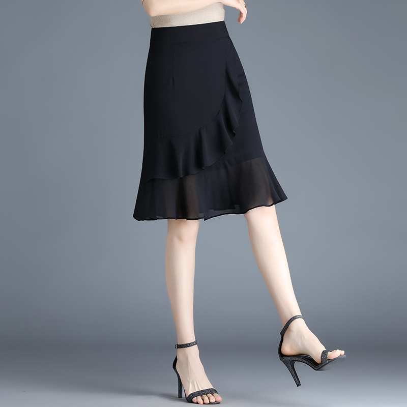 黑色雪纺短裙半身裙女夏季2022新款裙子高腰显瘦a字鱼尾裙包臀裙 AL89789