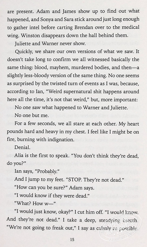 Narrated by Juliette, Warner, and Kenji Kishimoto, this gripping novel will leave readers hungry for Imagine Me, the sixth novel in the series.