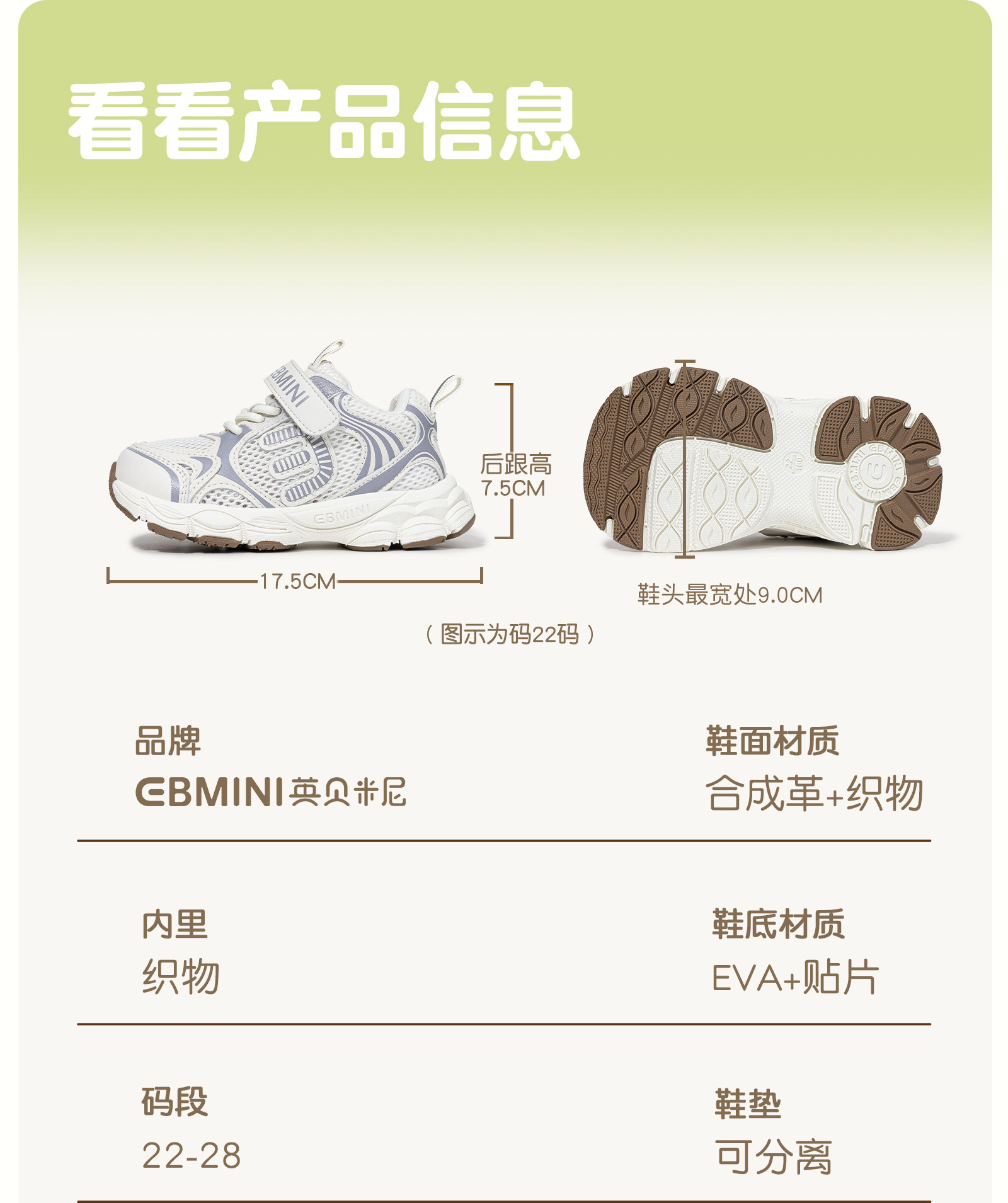 EBMINI英贝米尼儿童学步鞋2026春季新款潮流老爹鞋跑步鞋女轻便运动减震22-28