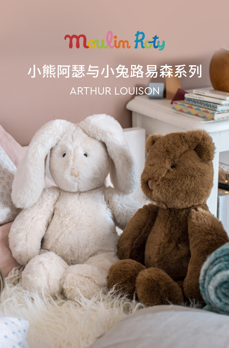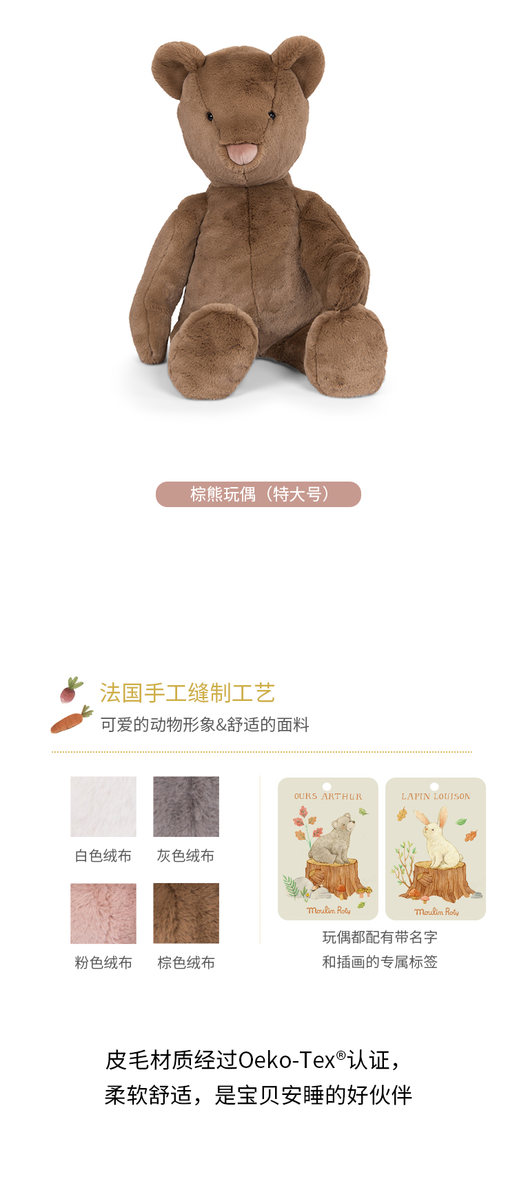 Moulin Roty 大号棕色小熊 法式玩偶 适合年龄0岁+ 小熊阿瑟与小兔路易森系列 法国玩具 680016