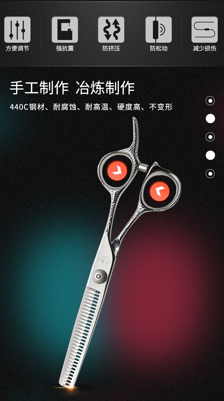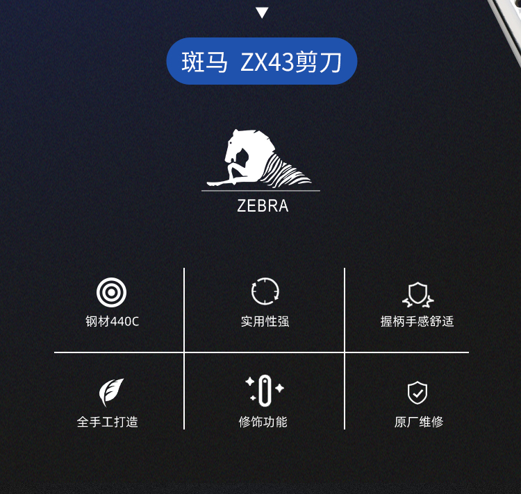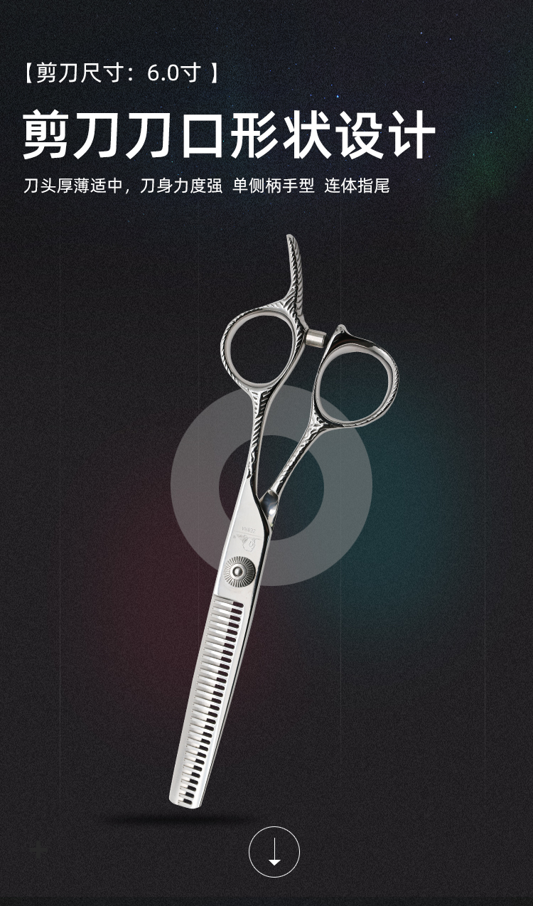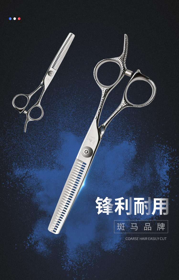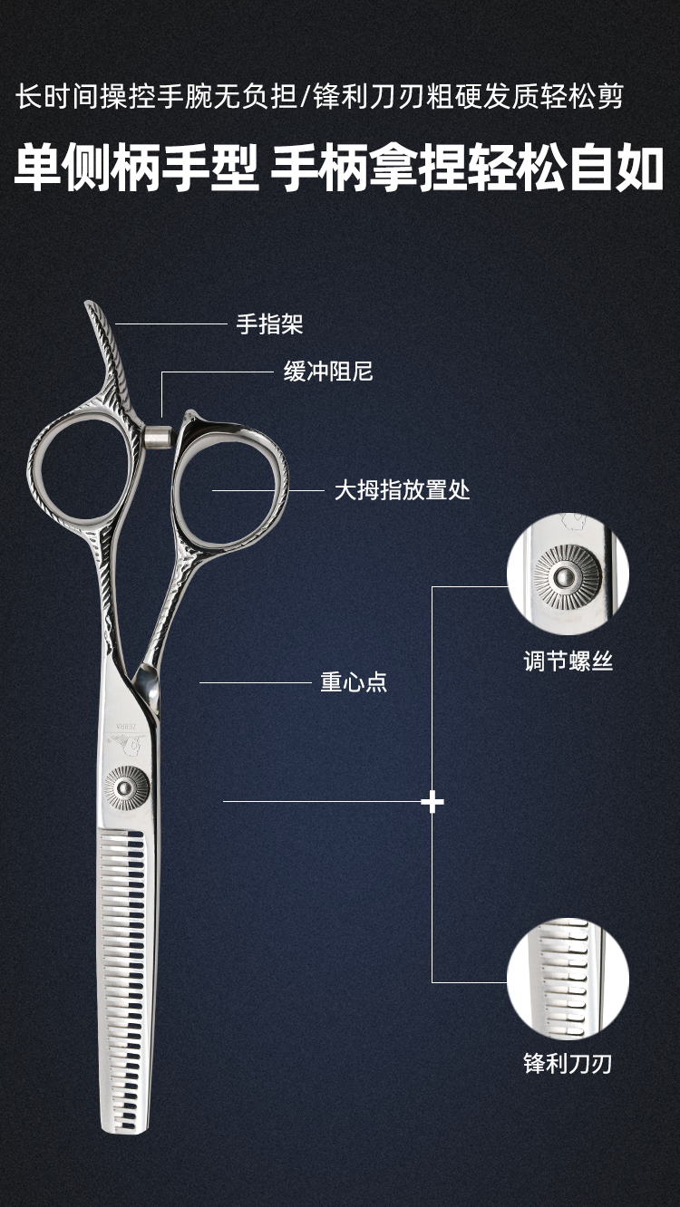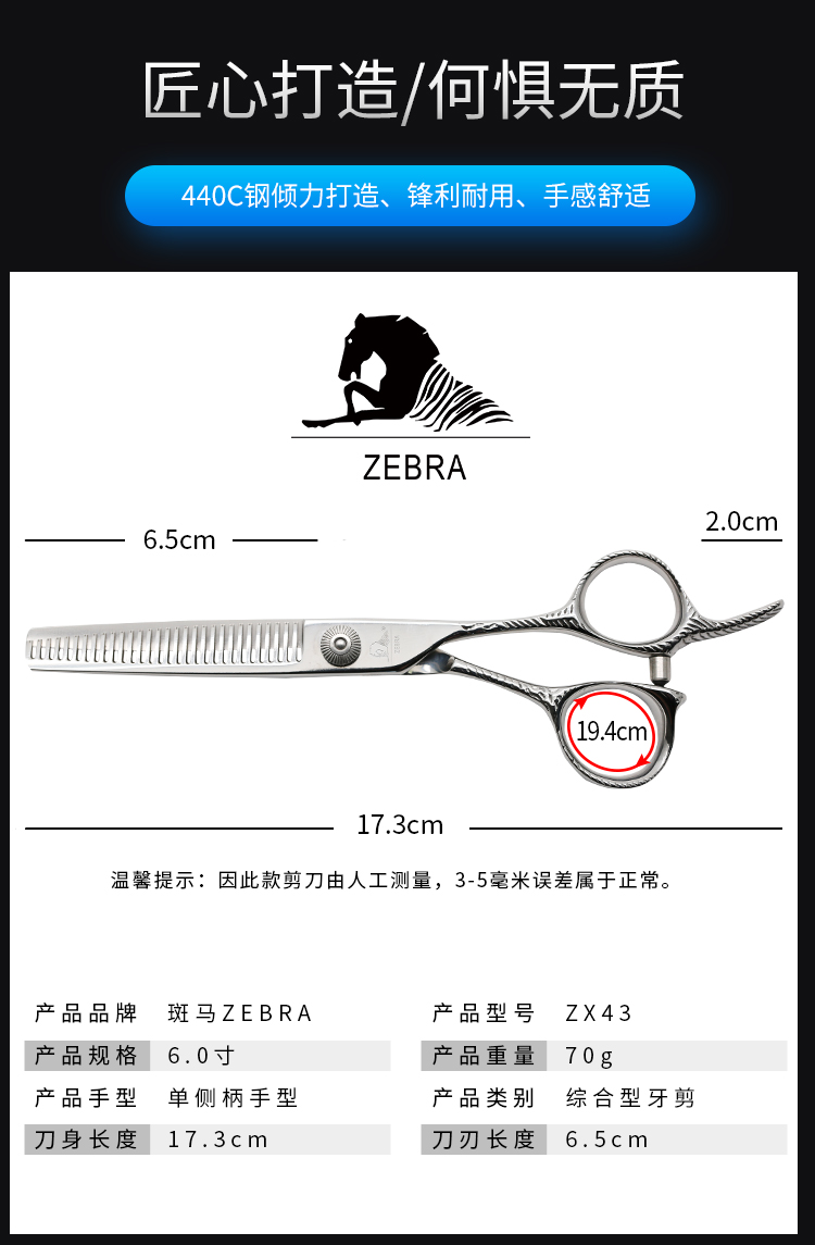 ZEBRA斑马 剪刀 ZX43 牙剪/调量剪/综合牙剪/打薄剪/去发量25-30%/ V齿/30根齿/正刃/6寸