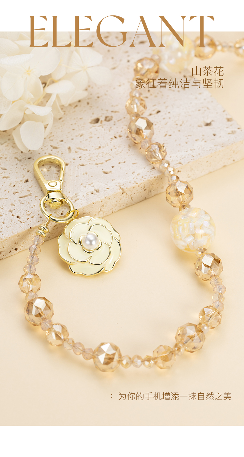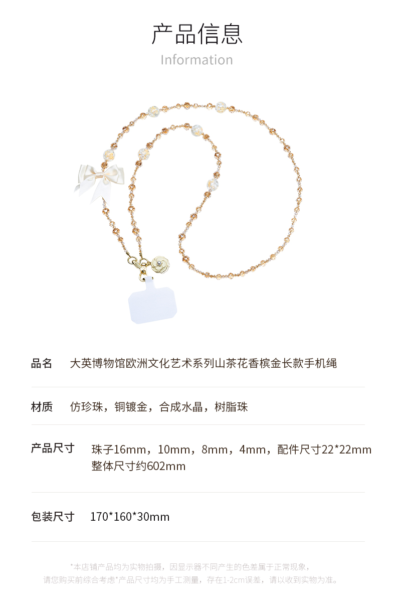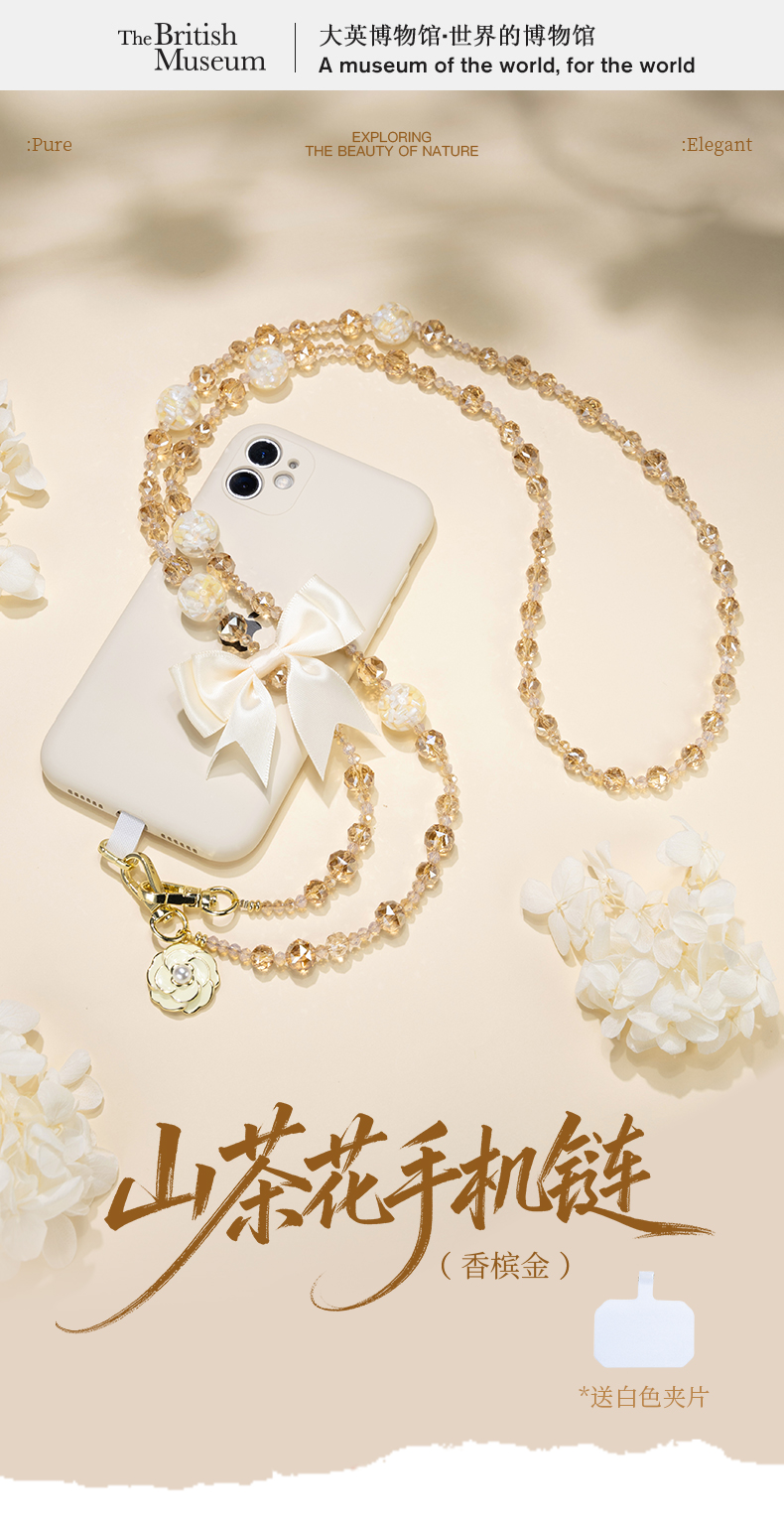 大英博物馆 欧洲文化艺术系列 山茶花 香槟金长款手机绳