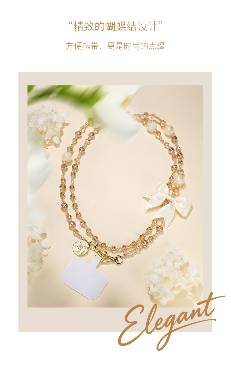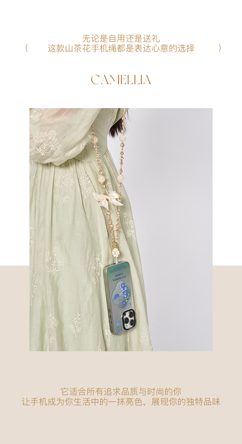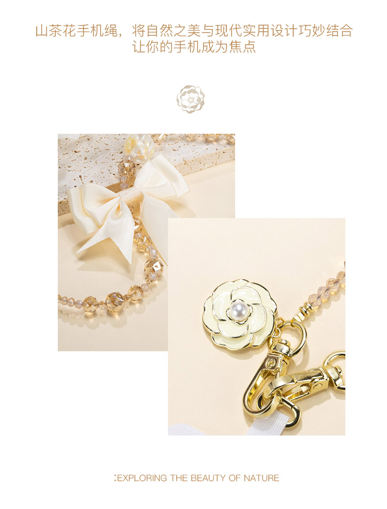 大英博物馆 欧洲文化艺术系列 山茶花 香槟金长款手机绳