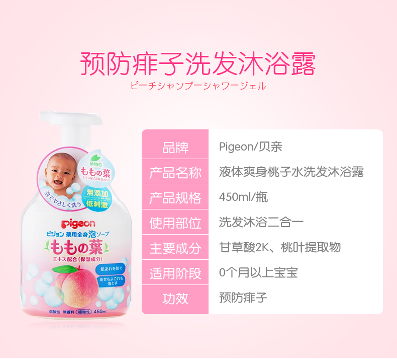 【保税仓】日本Pigeon贝亲桃子沐浴露450ml