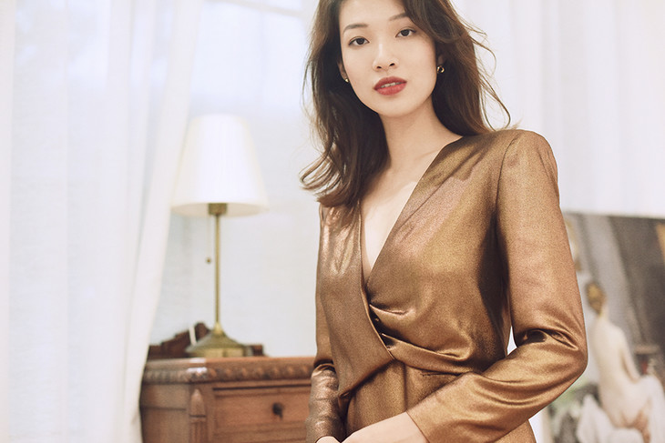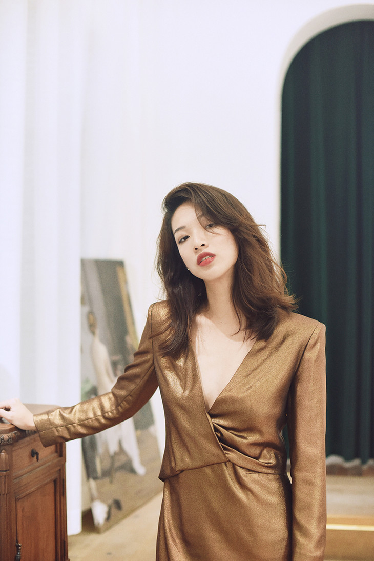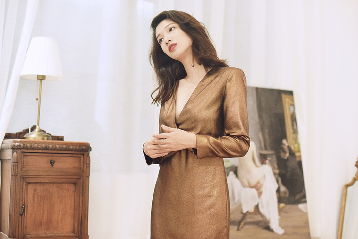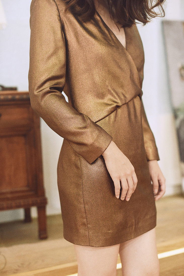AtelierMissLu / Alex 铜棕金V领短款小礼服