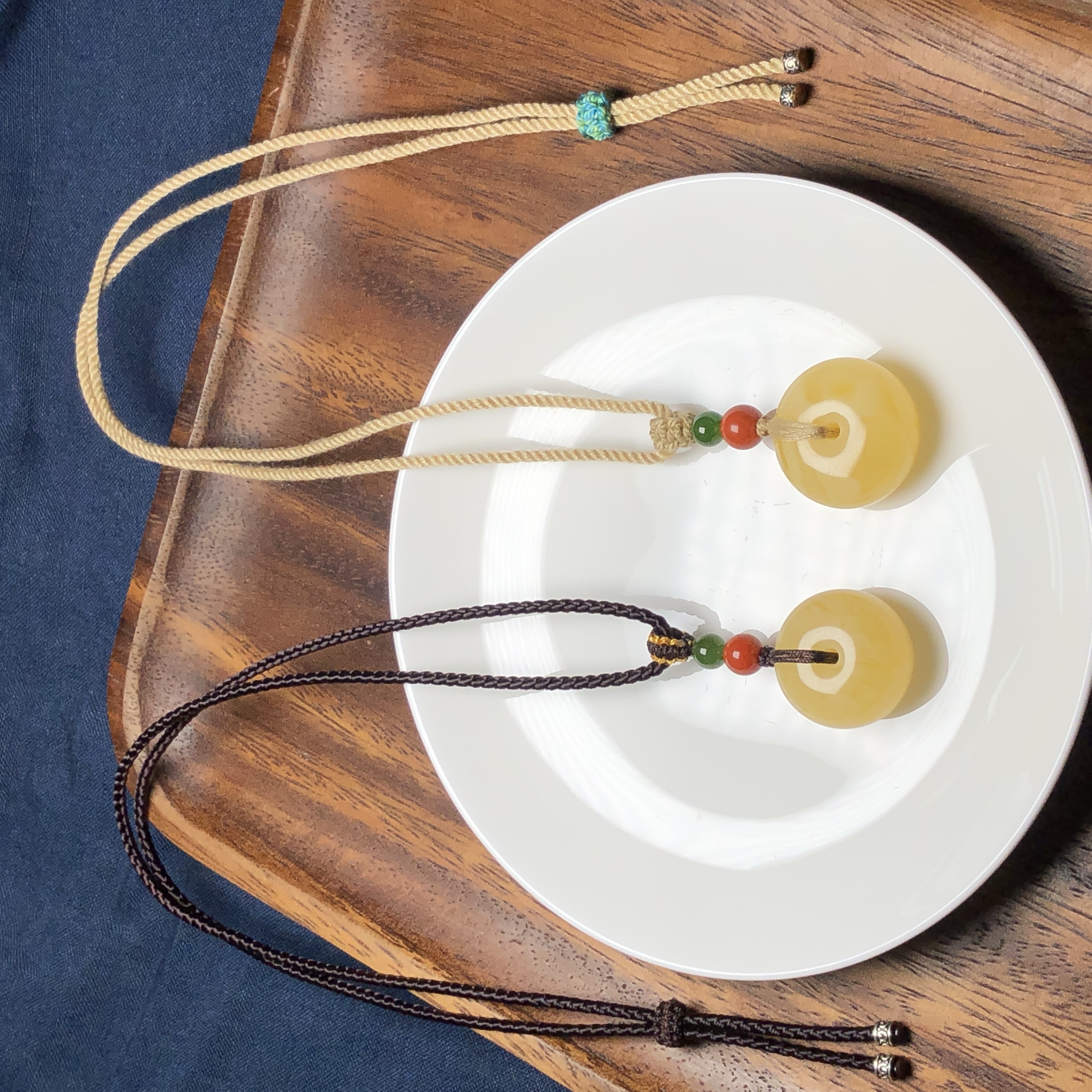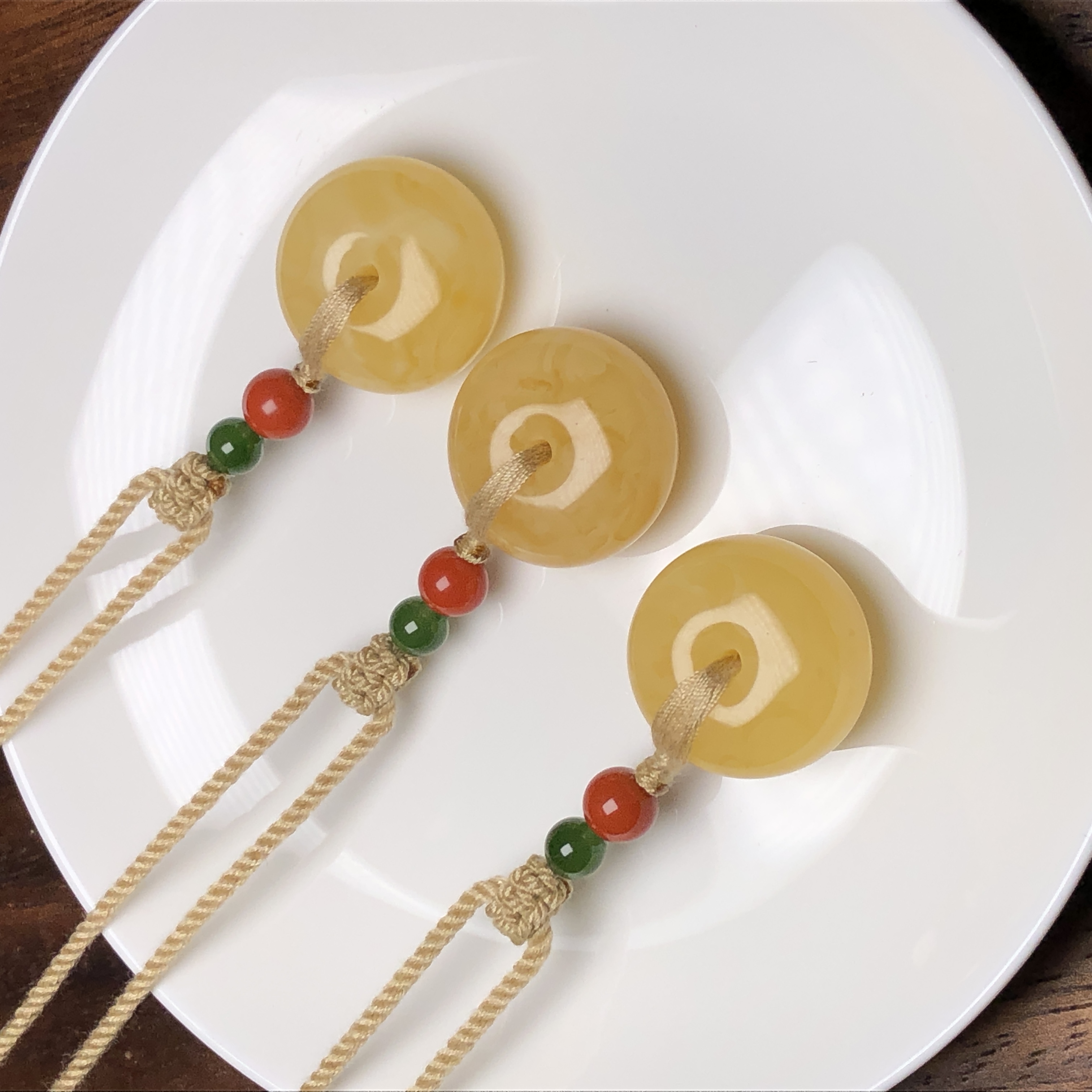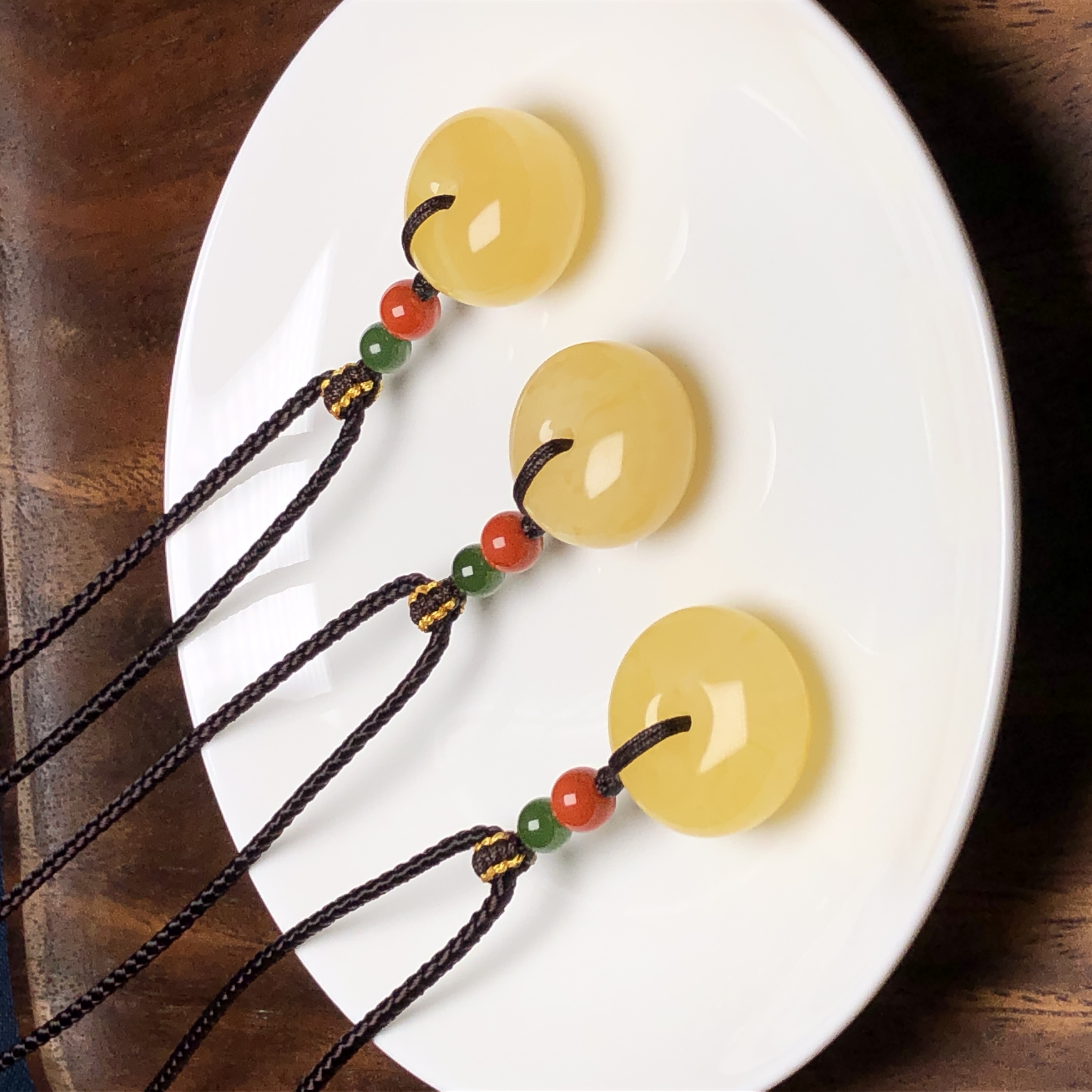 蜜蜡平安扣碧玉南红银饰吊坠 饰品美物