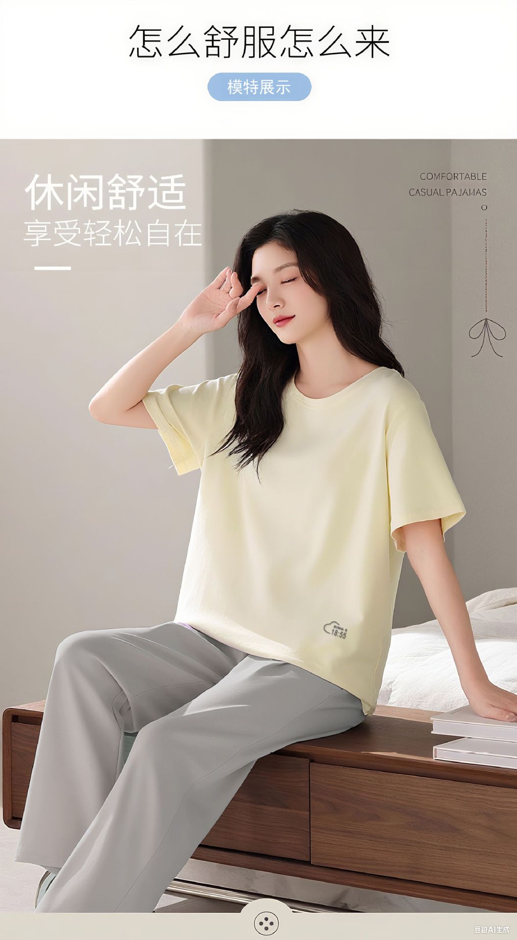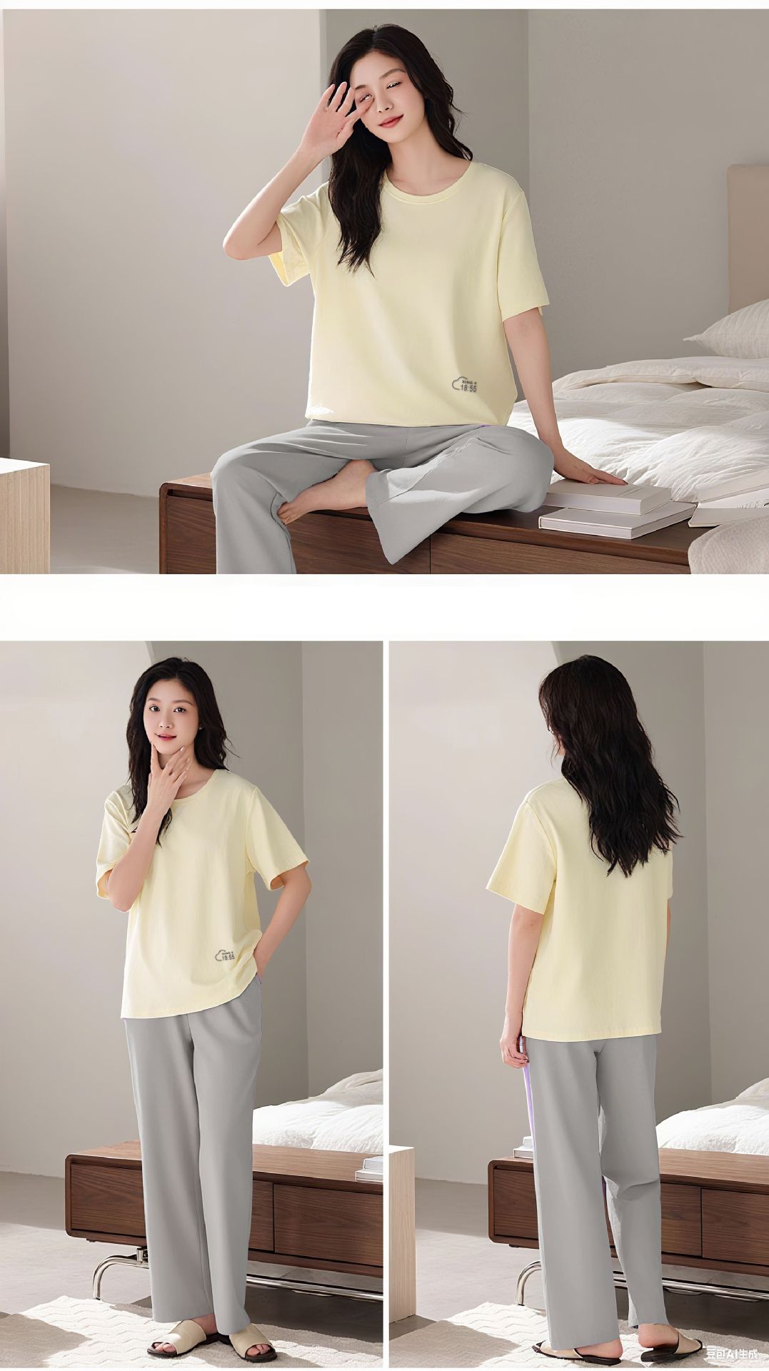 【百搭纯色❗好看不挑人】莫代尔睡衣套装女夏季宽松短袖T恤外穿休闲长裤大码家居服两件套。rh