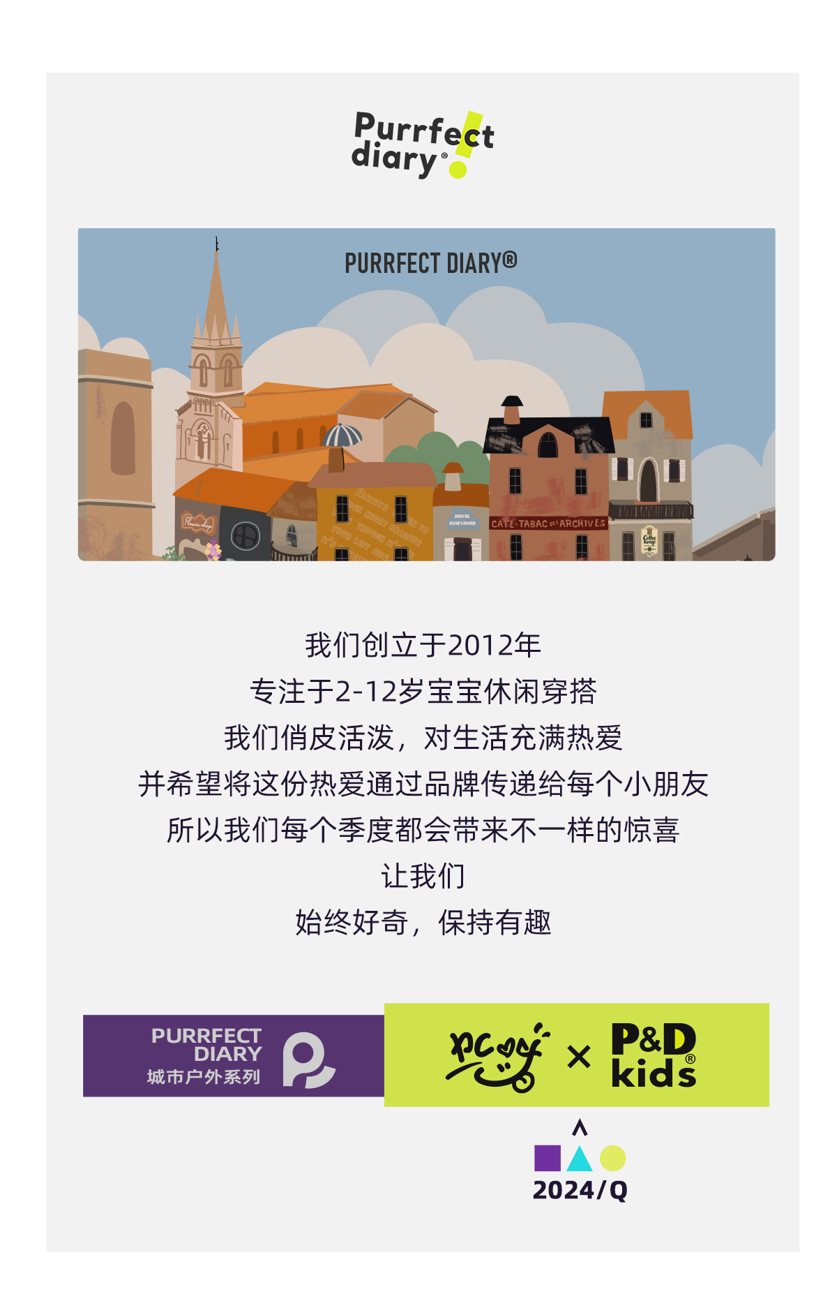 Purrfect-Diary专注于贴近自然随性的穿着概念,轻奢平价的童装文化传播,在产品设计上更加注重婴童穿着的舒适性、安全性、更出众的国际化品牌,将欧美的育婴文化在中国进行深入的传播与推广。