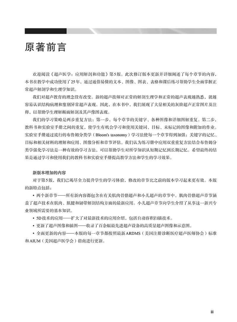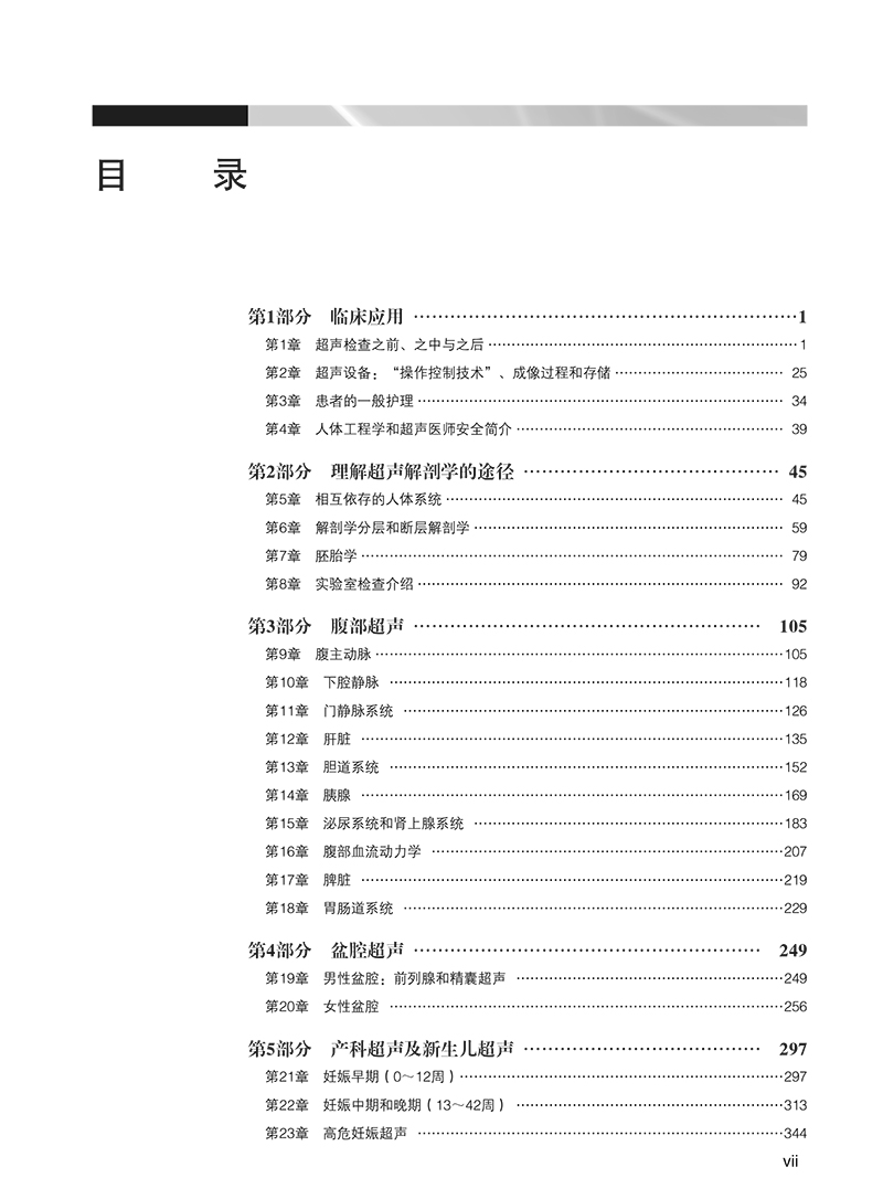 本书是美国超声经典专著,截至目前,巳出版到第5版,深受欧美国家超声医师喜爱。本版运用简洁的文字,由浅人深的写作方式,将正常超声解剖学和生理学重要知识点、临床思路和诊断融会贯通。全书共分8个部分,详细叙述了超声的临床应用、理解超声解剖学的途径、腹部超声、盆腔超声、产科超声及新生儿超声、小器官超声、特殊超声专业技术、当代超声技术。本版新增了2个章节,即肌肉骨骼超声和小儿超声。肌肉骨骼超声介绍了用于可视化肌肉、肌腱和韧带解剖学的最新超声技术;小儿超声介绍了这一新兴专业中所需的基本知识及5D技术,扩展了对最新技术的解读,包括自动化体积扫描的内容,展示了最新和最佳设备图像。本书每个章节都反映了最新的ARDMS标准和AIUM指南。