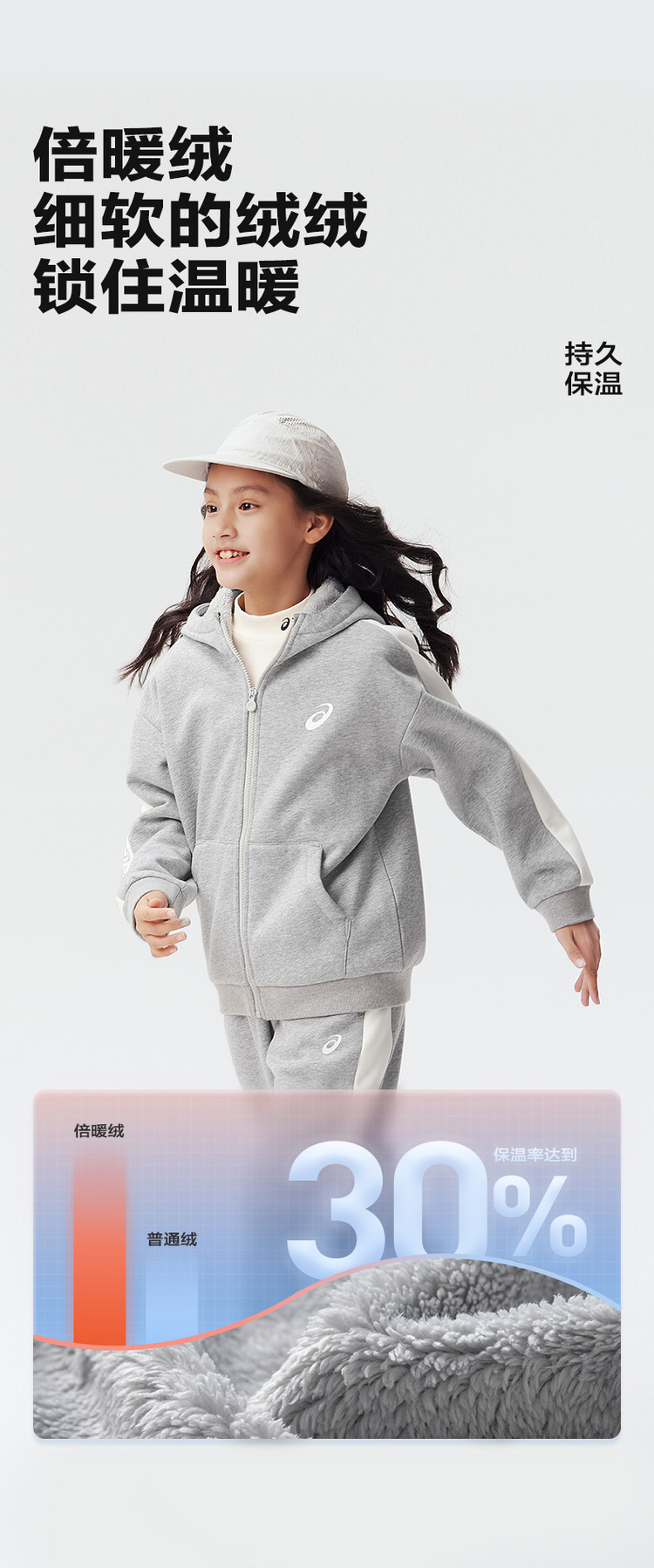 Asics/亚瑟士童装2024年秋冬新品运动保暖外套开衫儿童针织外衣