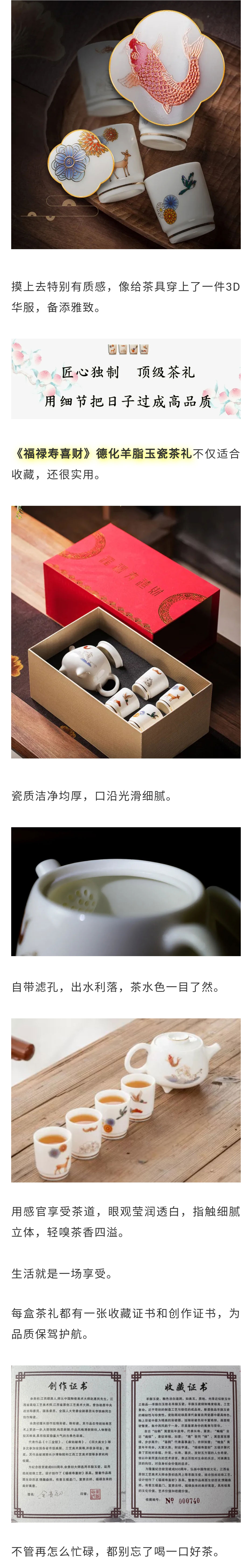 《福禄寿喜财》德化羊脂玉瓷茶礼