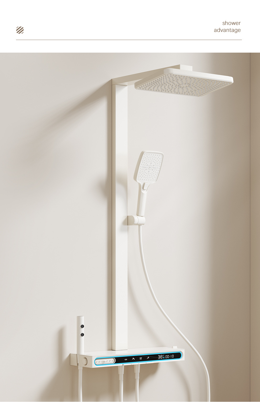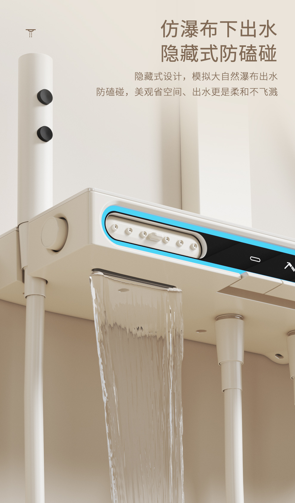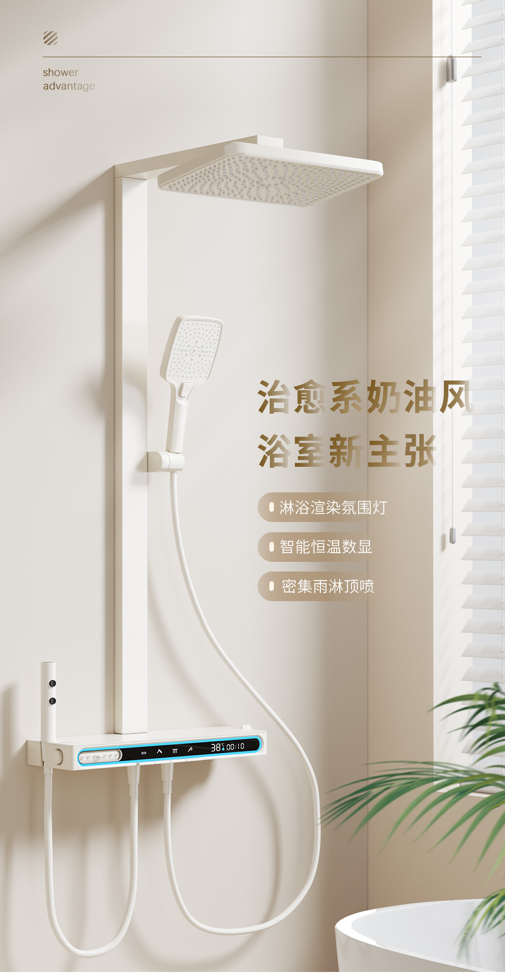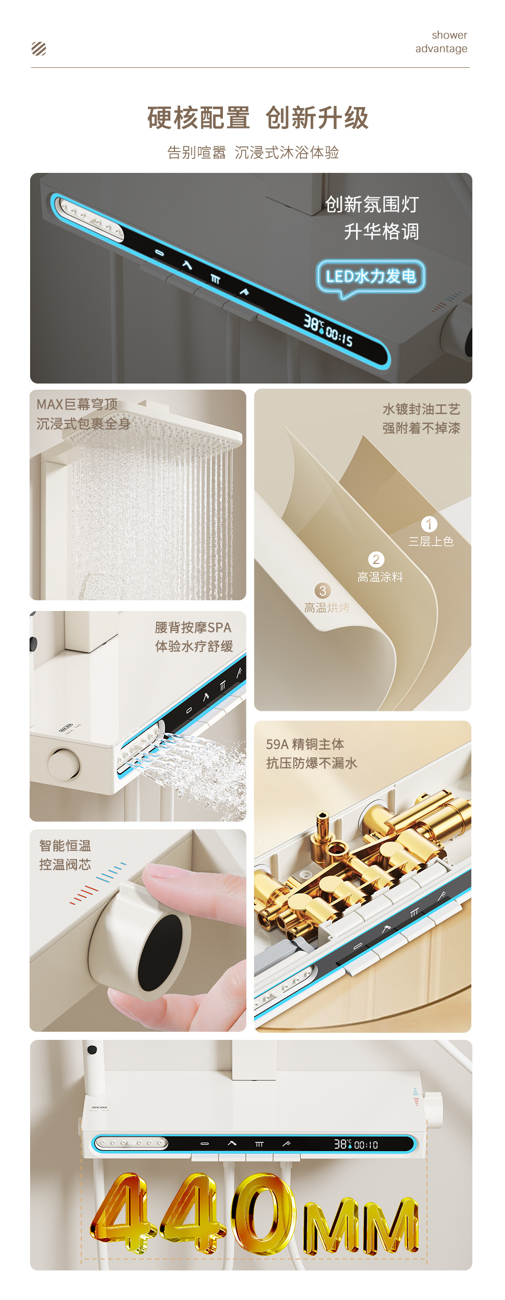 网红奶油风淋浴恒温数显全铜花洒套装浴室装修 增压 背喷腰喷SPA 数显 氛围灯钢琴键 五档增压套装1520