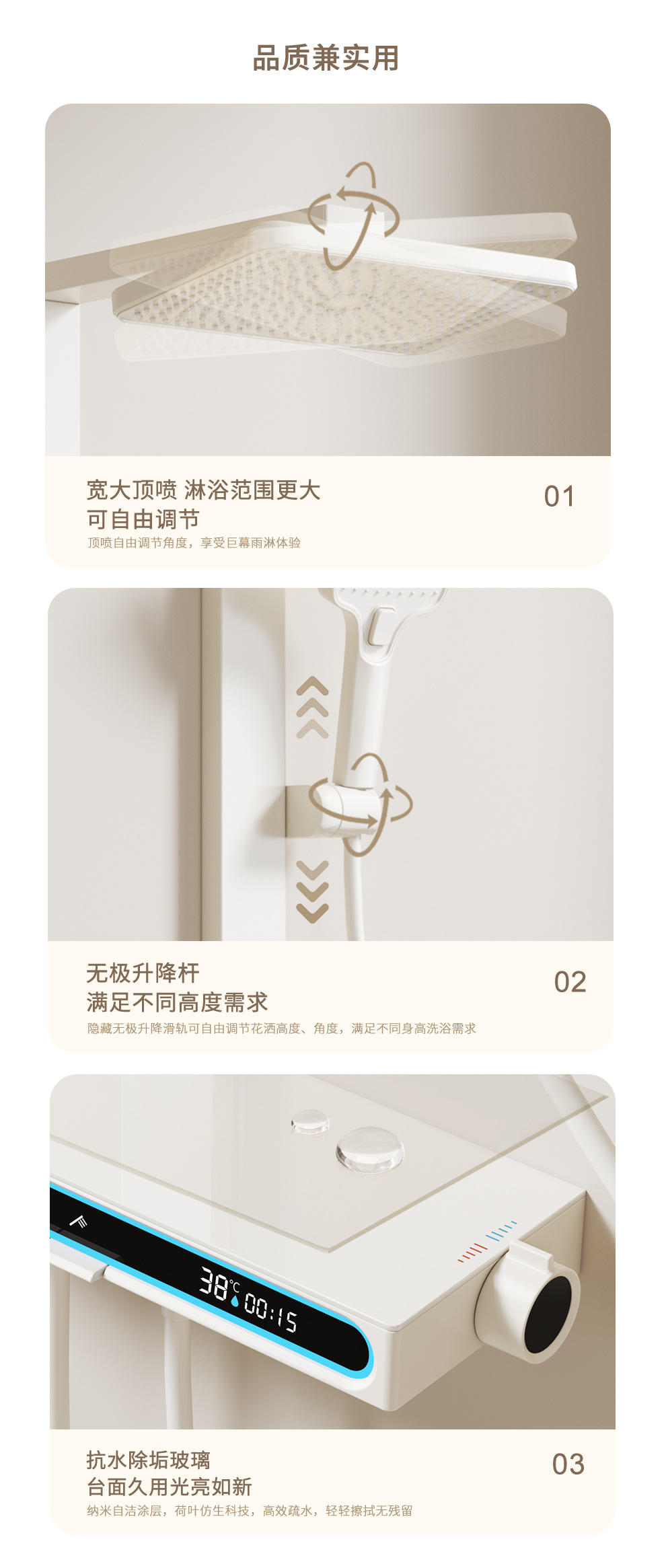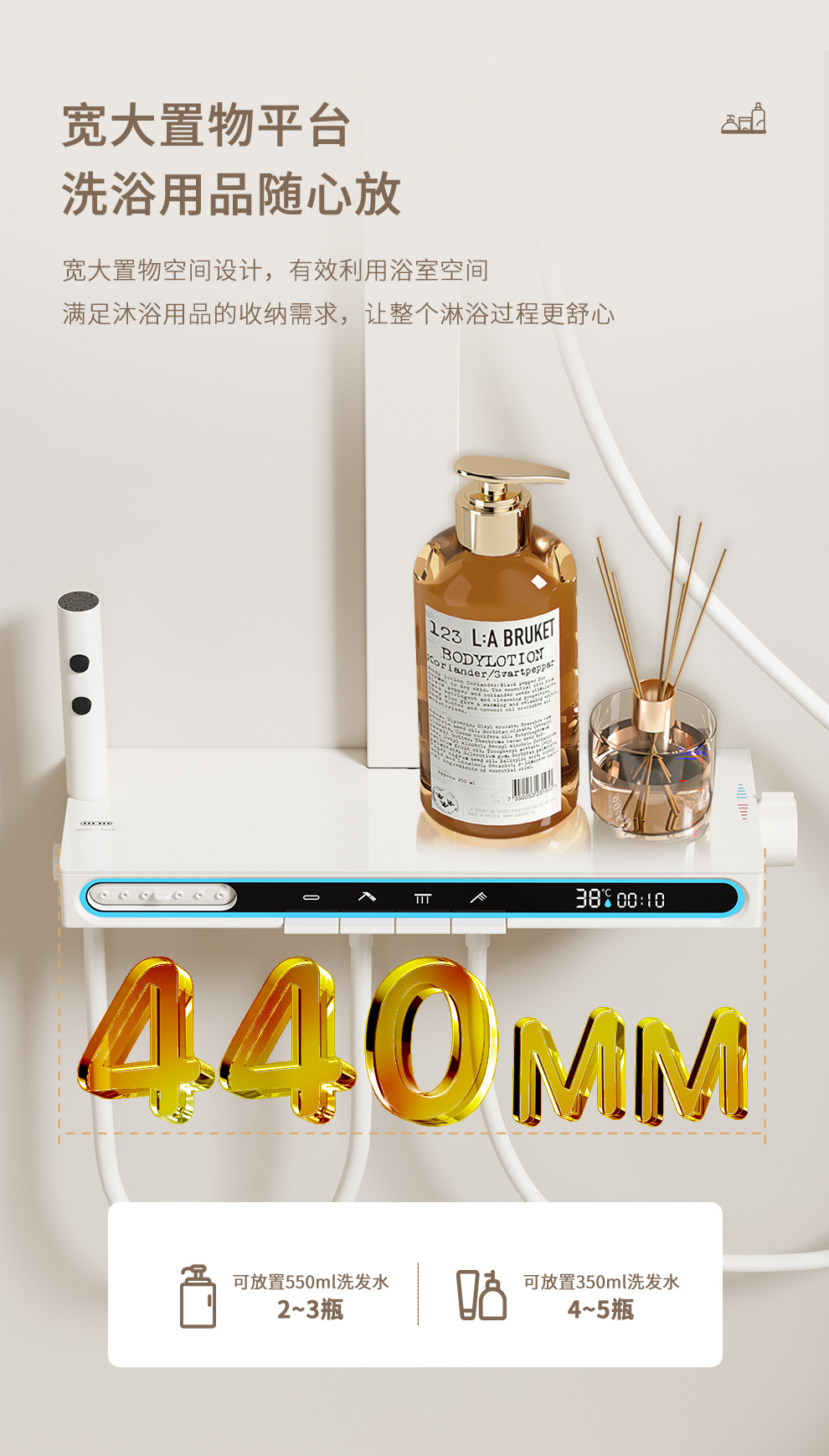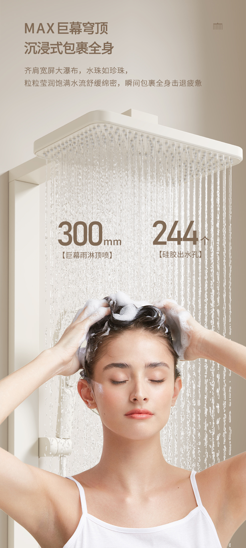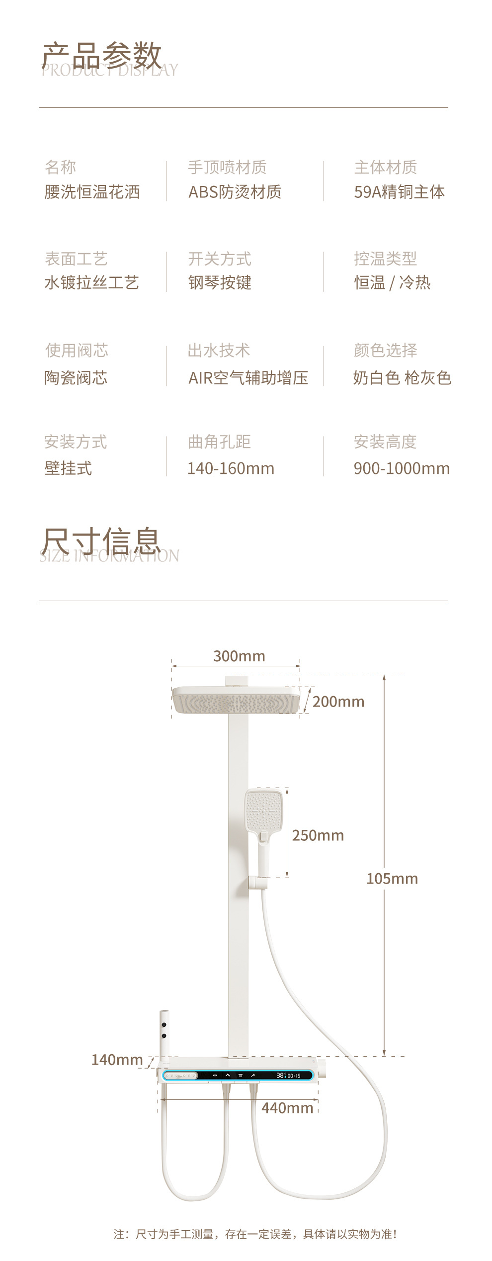 网红奶油风淋浴恒温数显全铜花洒套装浴室装修 增压 背喷腰喷SPA 数显 氛围灯钢琴键 五档增压套装1520
