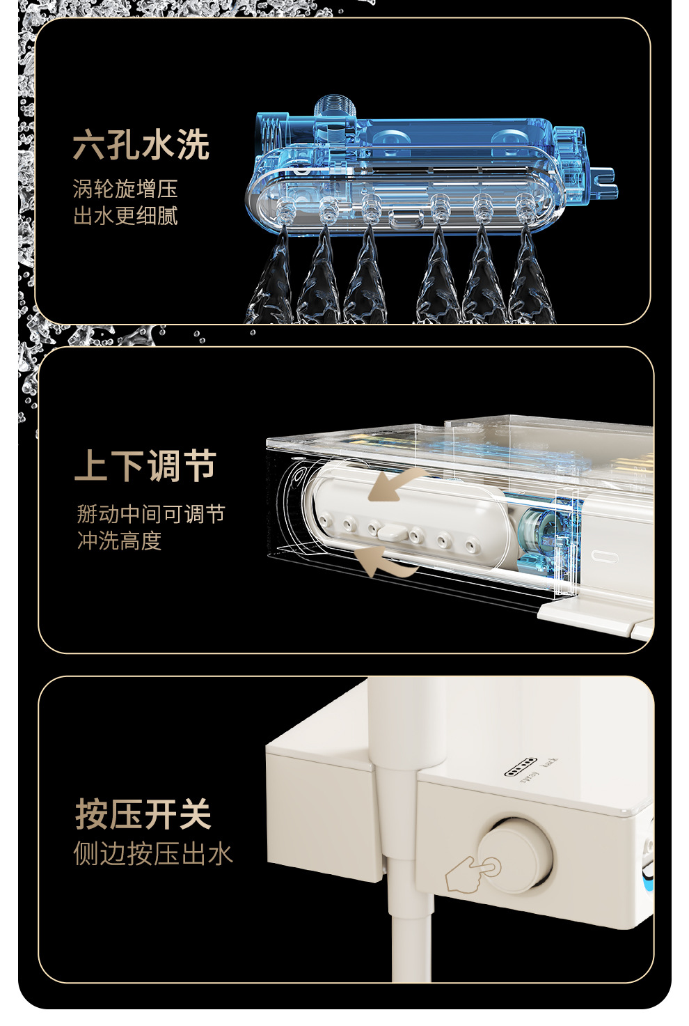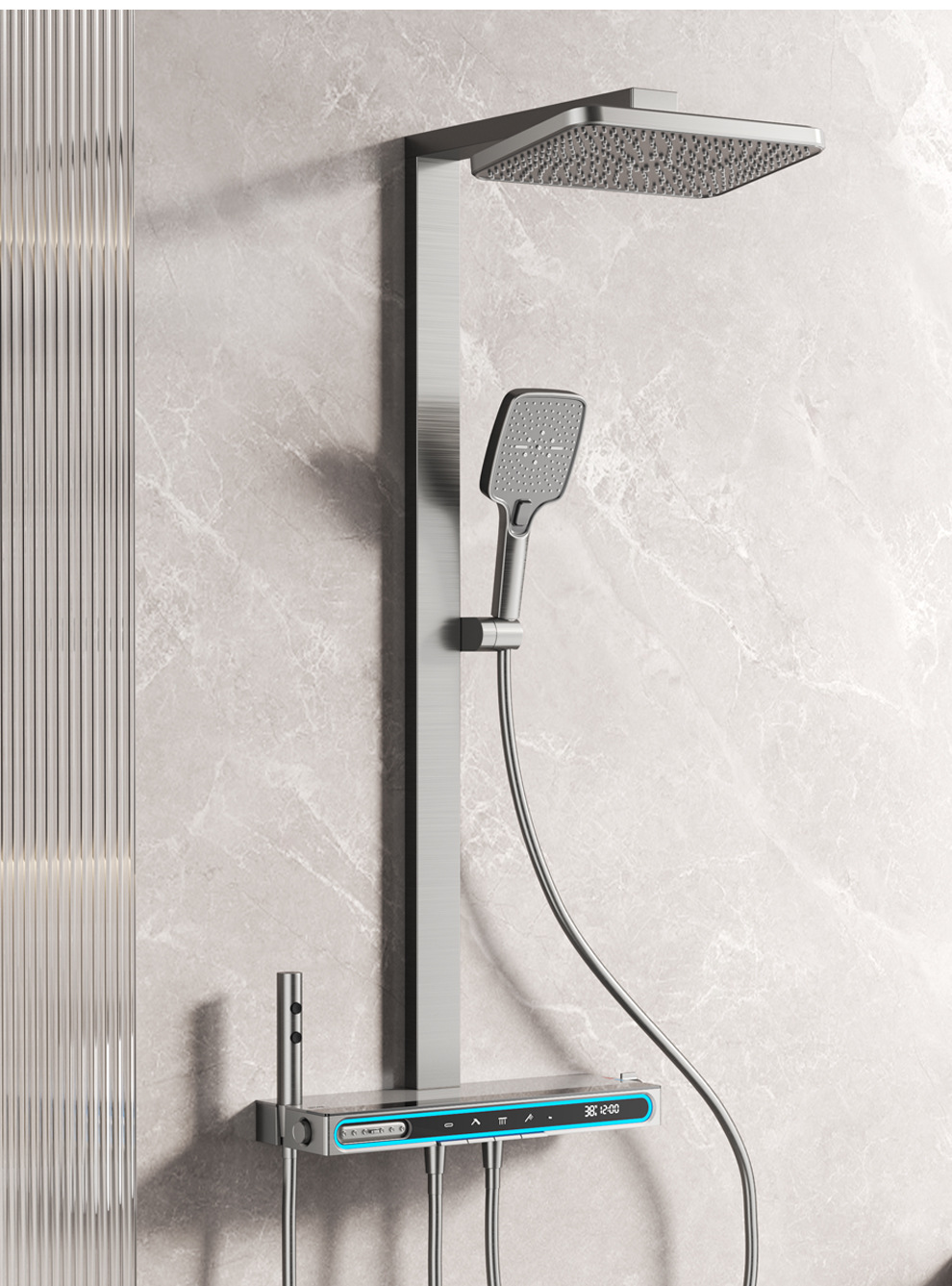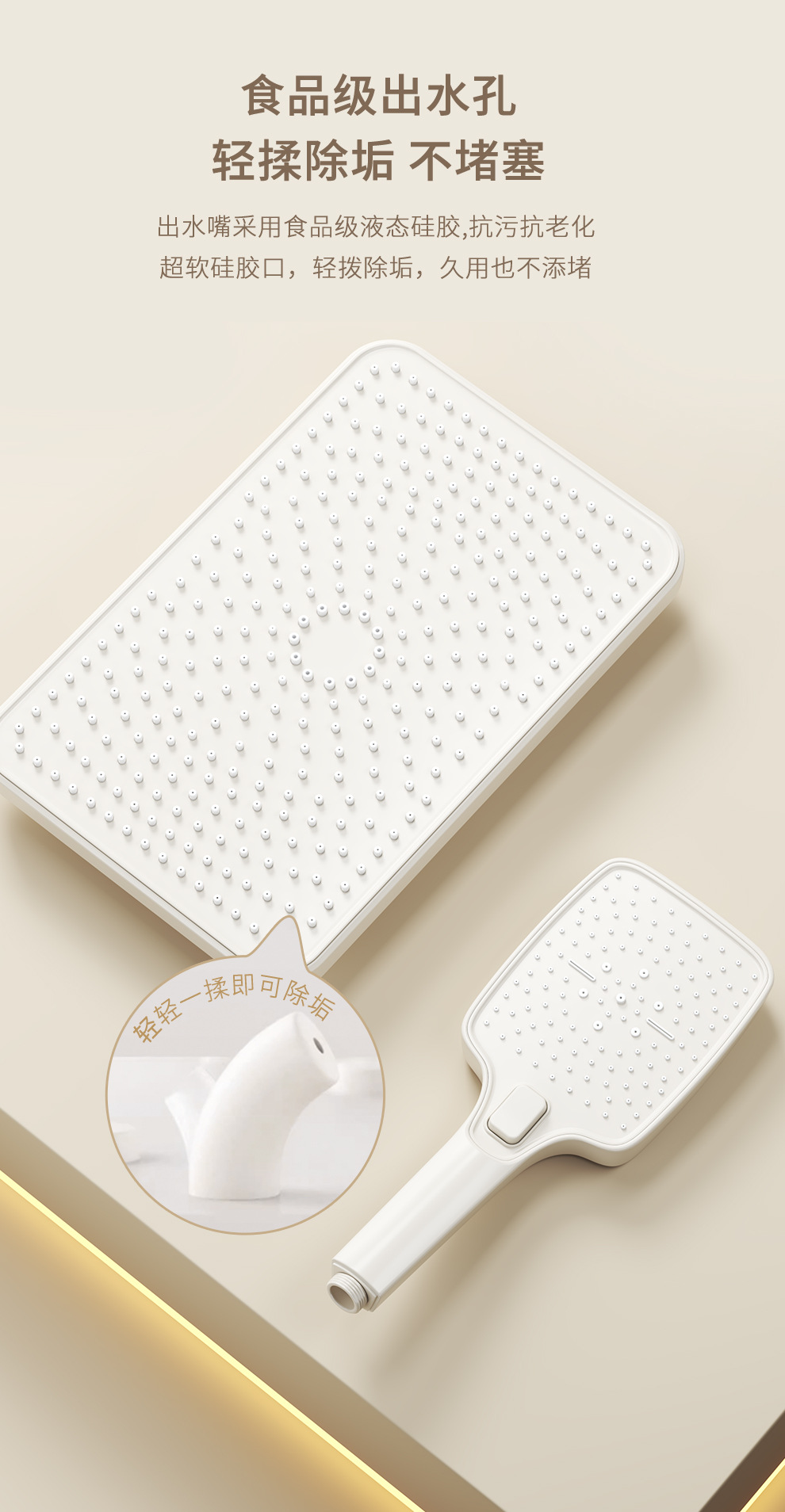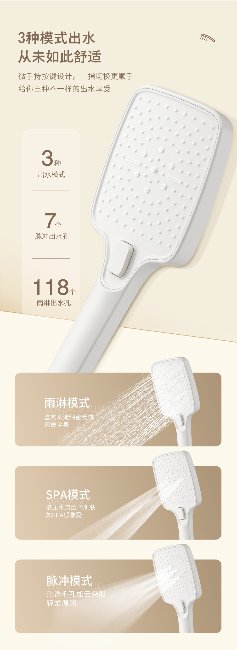 网红奶油风淋浴恒温数显全铜花洒套装浴室装修 增压 背喷腰喷SPA 数显 氛围灯钢琴键 五档增压套装1520