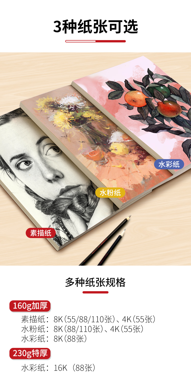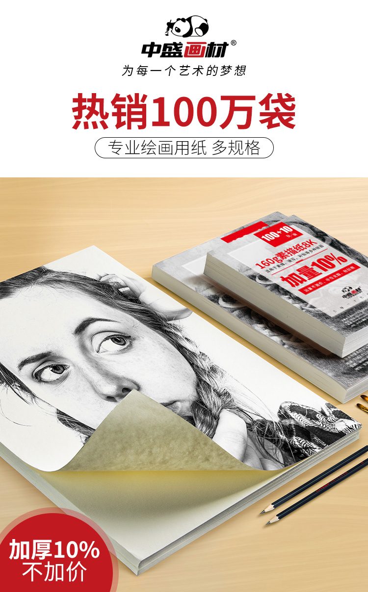 中盛画材 8k加厚素描纸儿童美术画画纸学生用绘画大白纸水粉纸水彩纸空白图画手绘纸