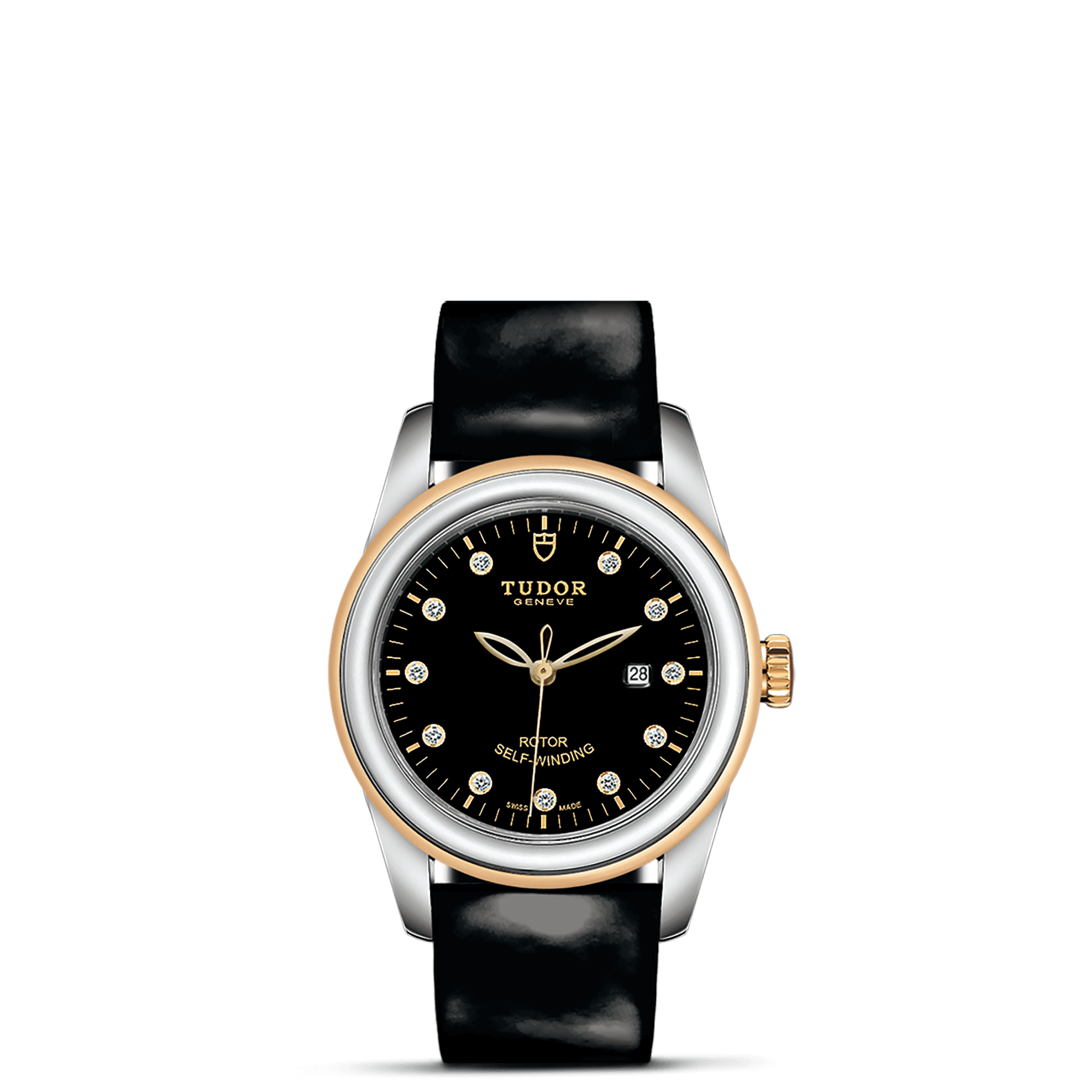 旋入式上链錶冠,饰以帝舵表标志;精钢覆有0.1毫米18K黄金薄层