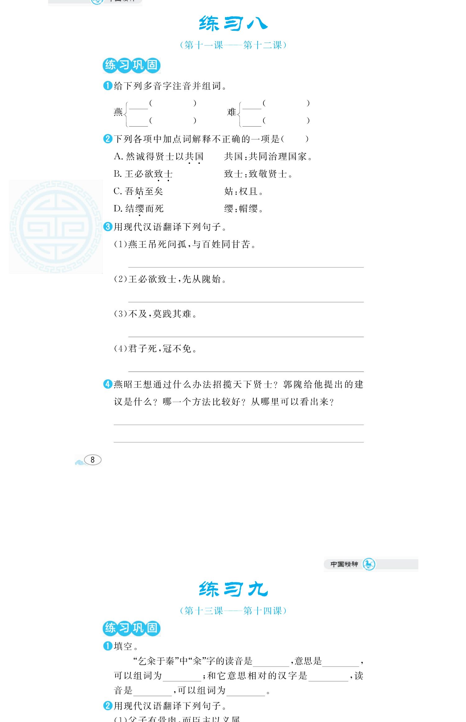 中国精神 八年级下册 8年级下册fb中华优秀传统文化教育读本
