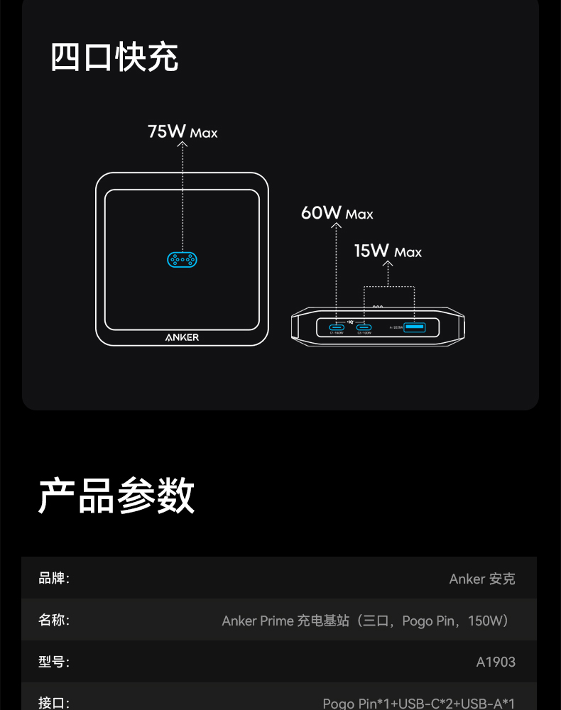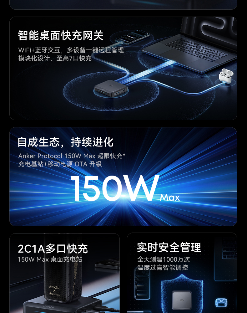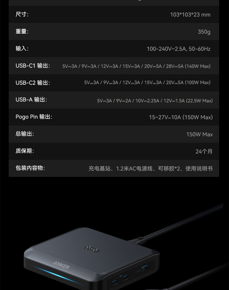 【新品】Anker安克 Prime系列 150W 桌面充电站 Pro A1903