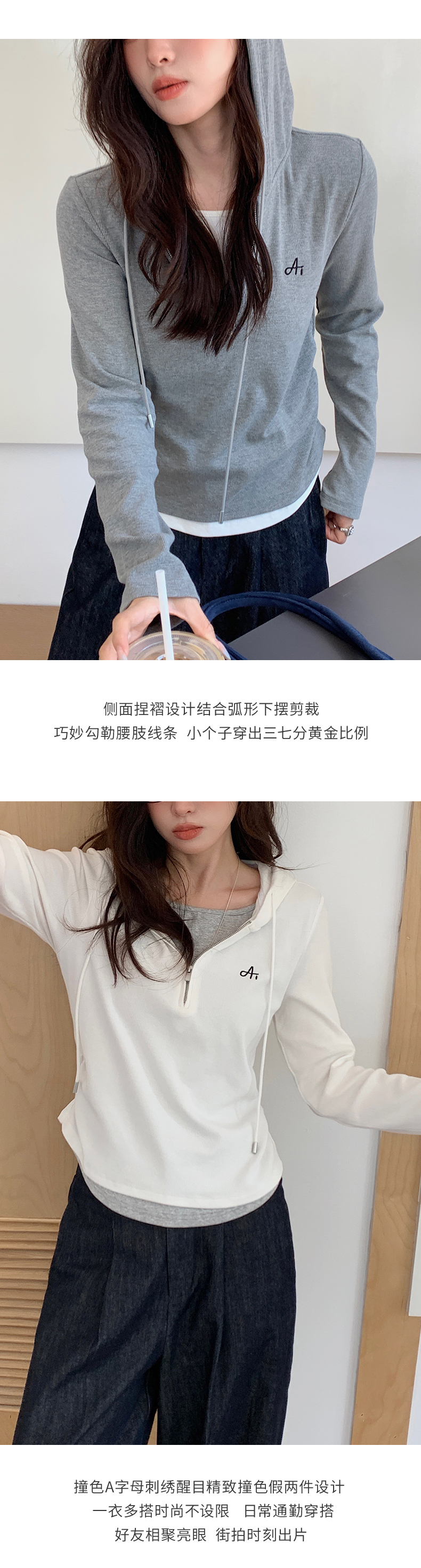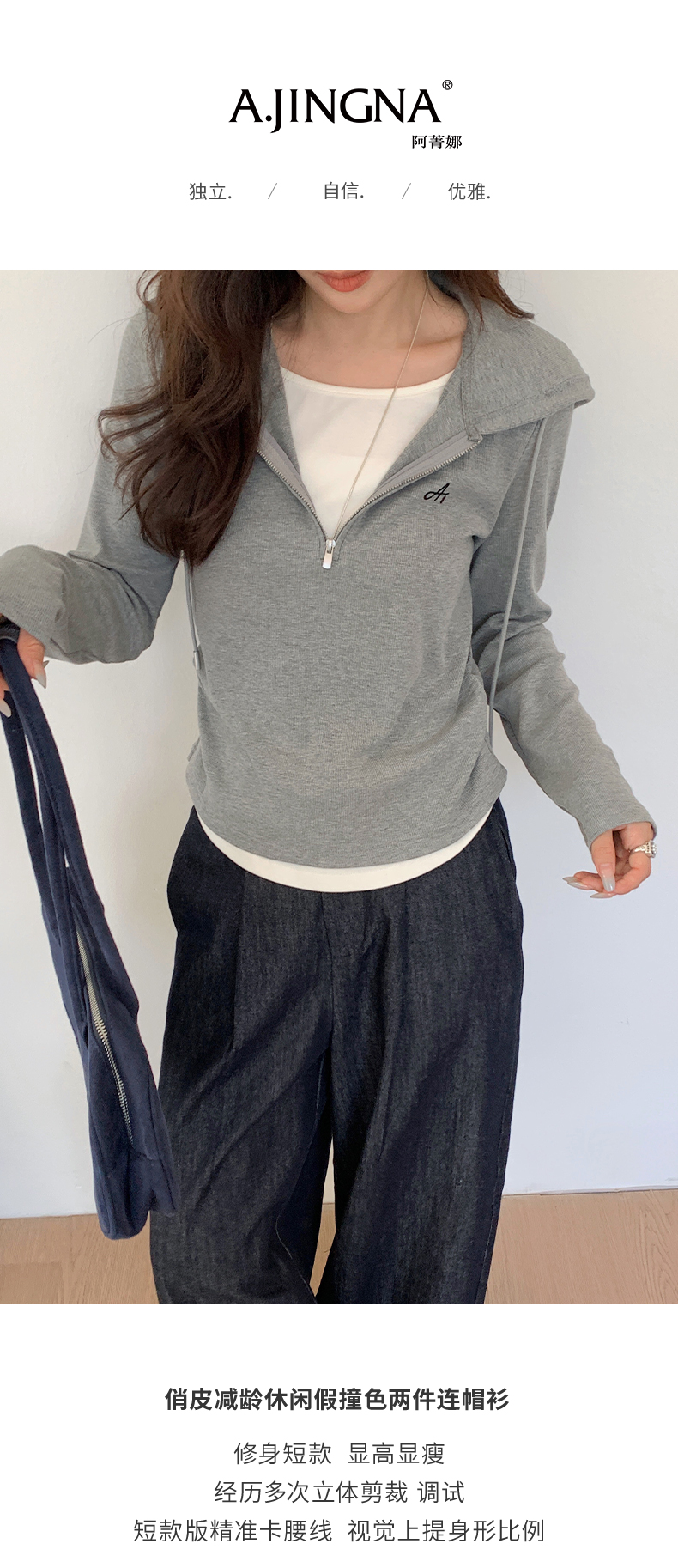 【超值秒杀】阿菁娜俏皮减龄撞色设计百搭假两件连帽衫F30Q302028