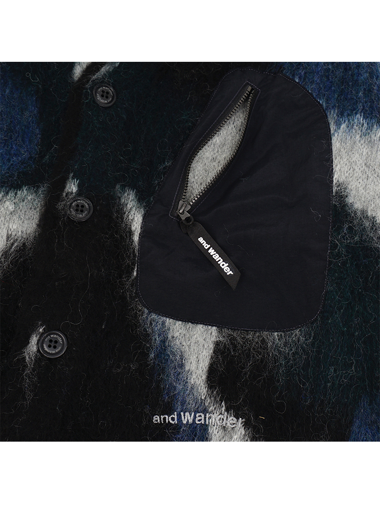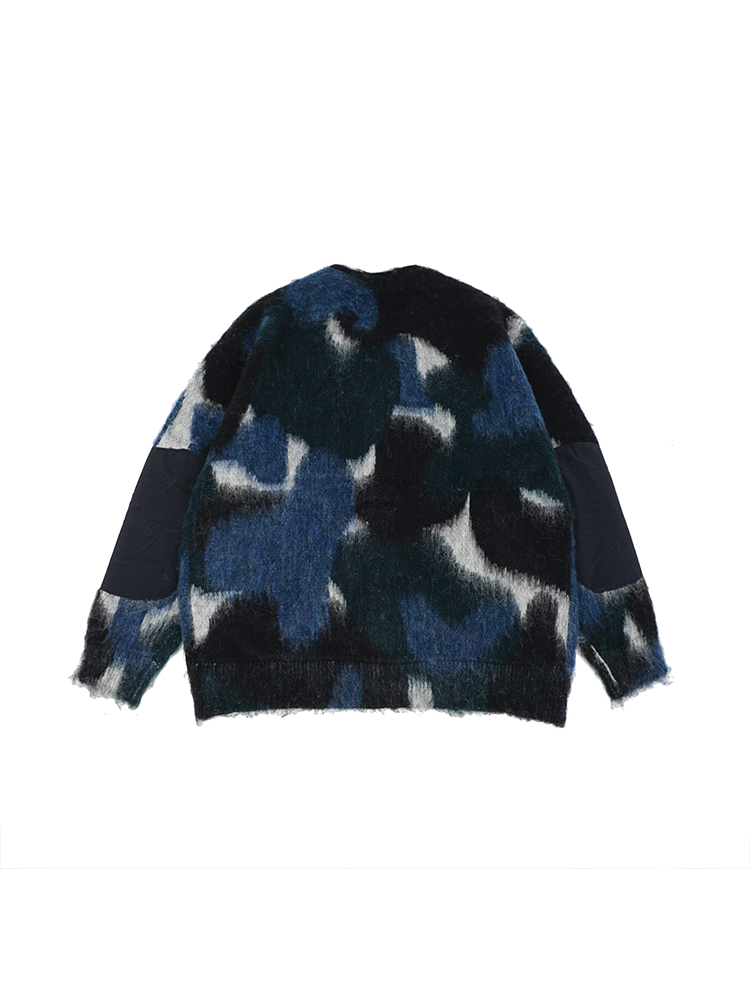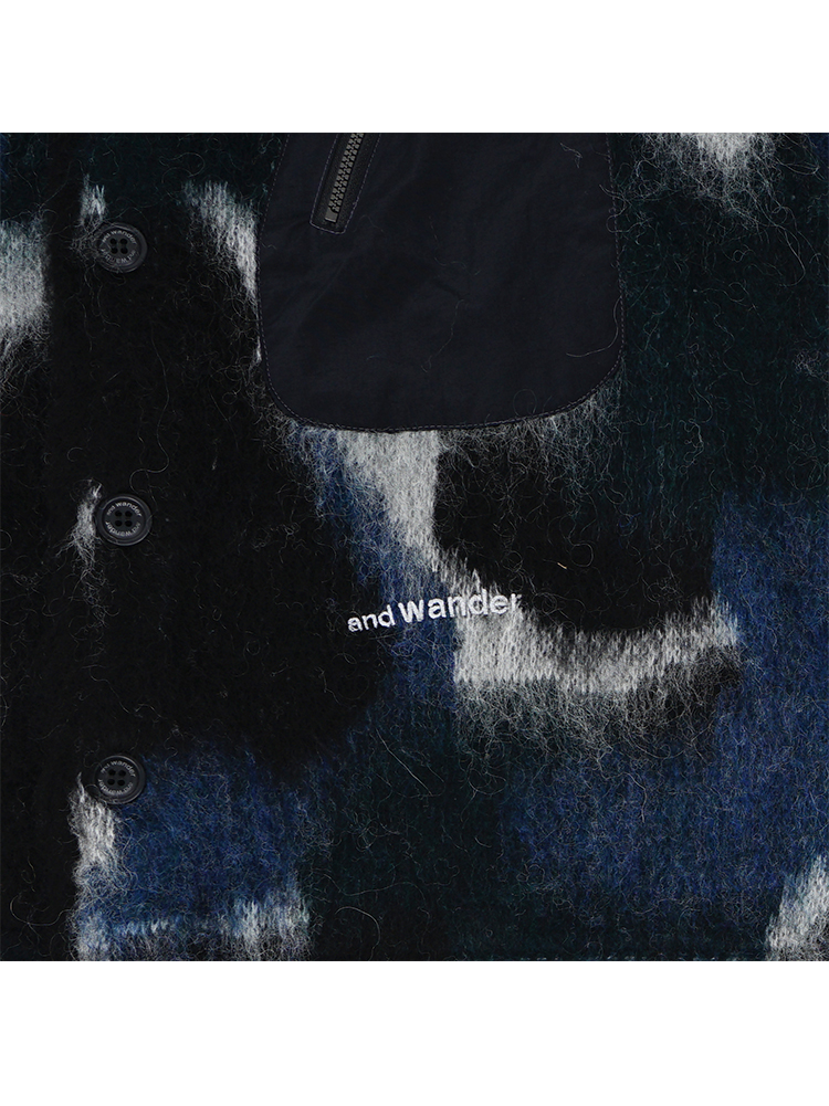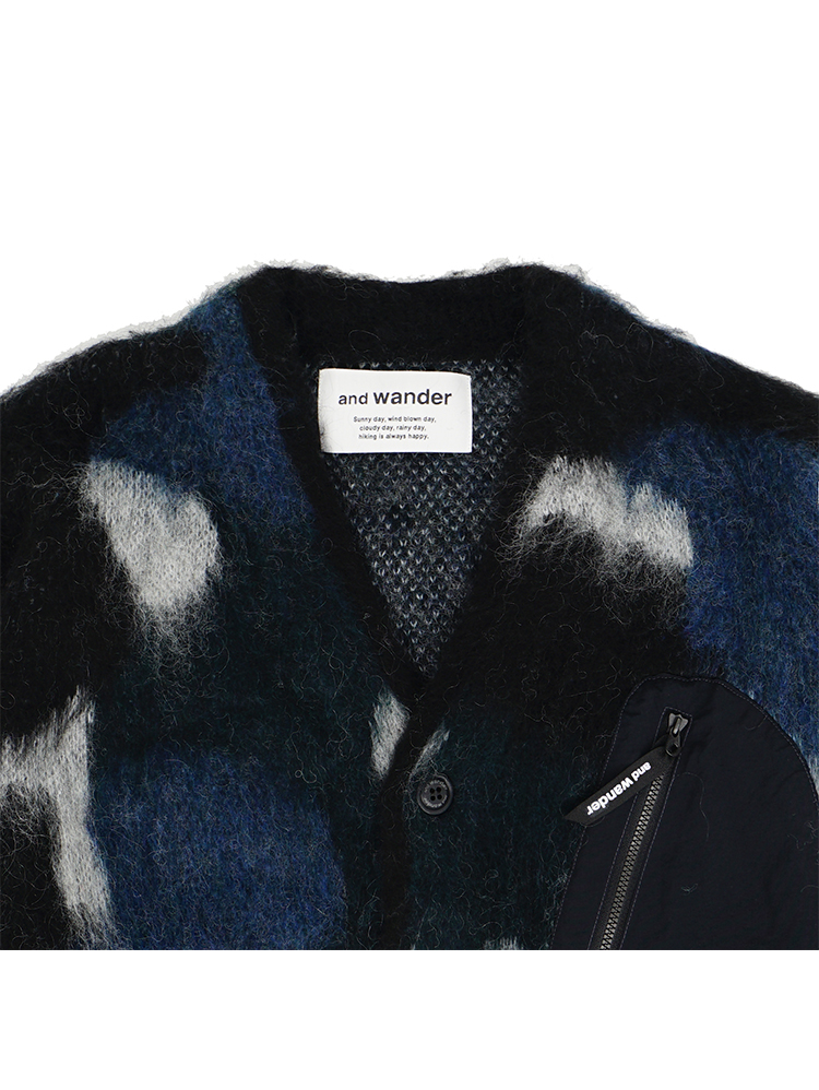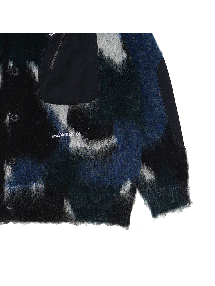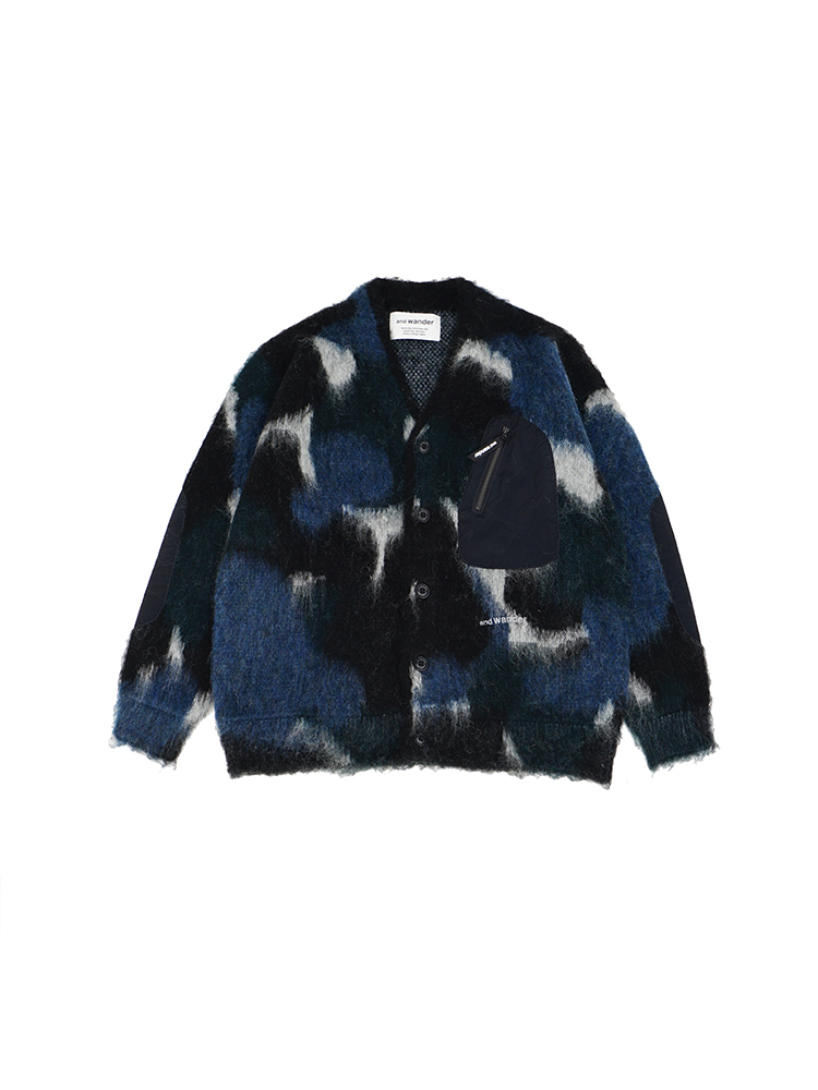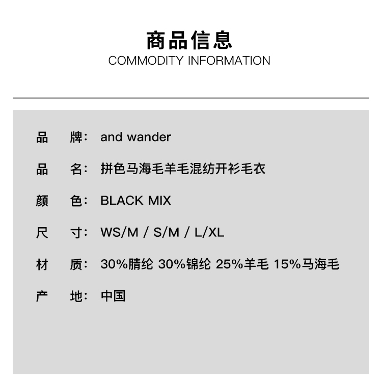 and wander mix color shaggy 男女拼色马海毛羊毛混纺开衫毛衣