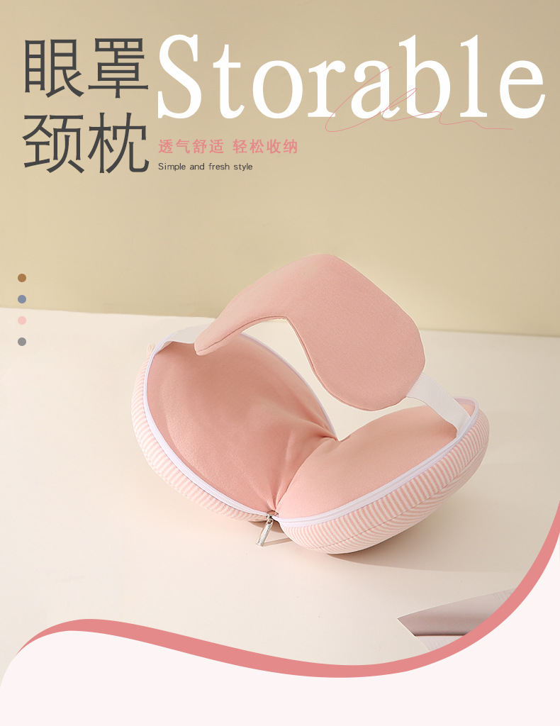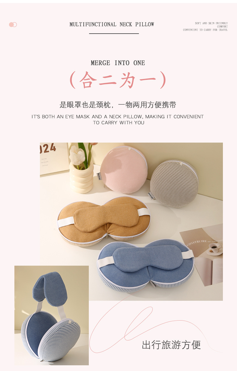 【柔软回弹!支撑性强】多功能PP棉U型枕遮光睡眠眼罩颈枕头二合一趴睡午休枕飞机旅行枕。xb