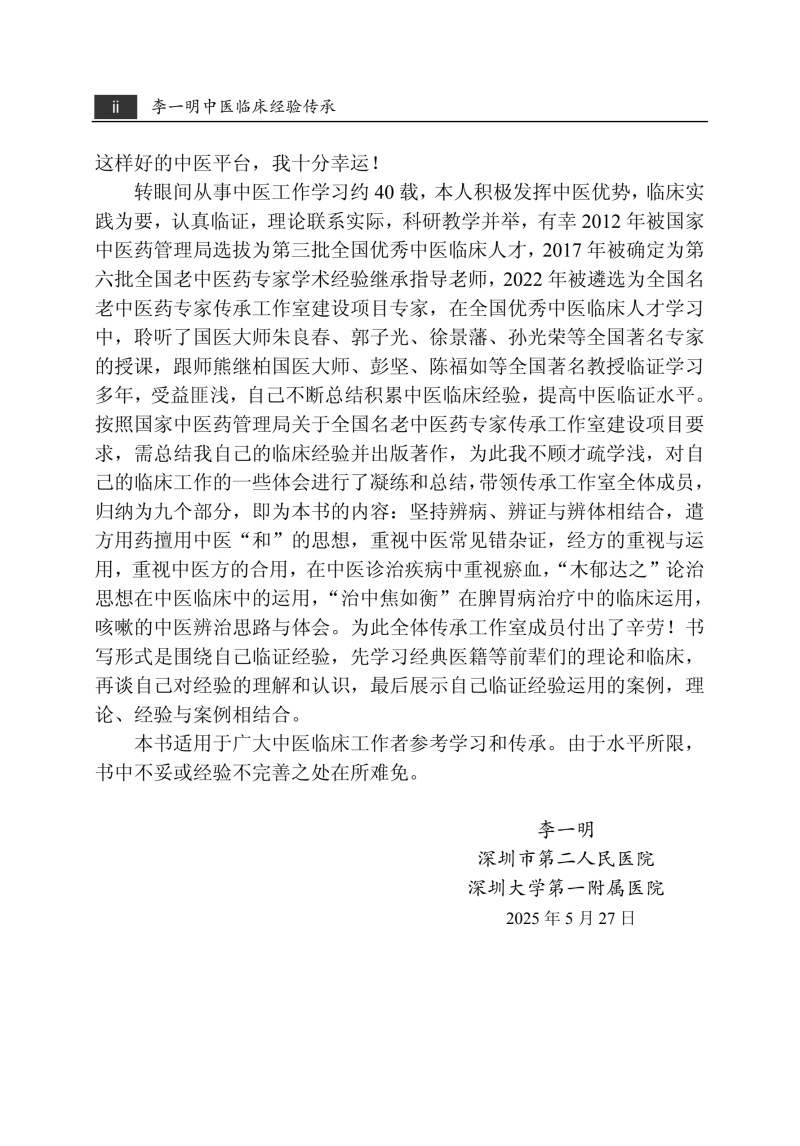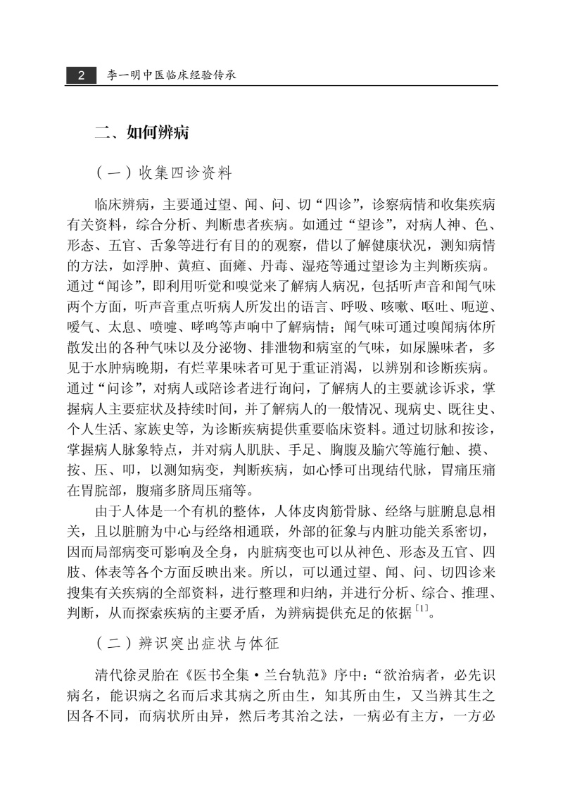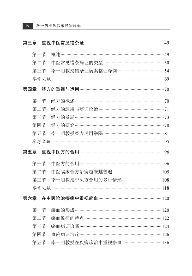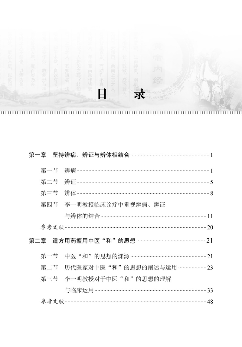 本著作系统地总结了李一明教授在中医临床约 40年经验与传承,涵盖了九个方面的内容。①坚持辨病、辨证与辨体相结合;②遣方用药擅用中医“和”的思想;③重视中医常见错杂证;④经方的重视与运用;⑤重视中医方的合用;⑥在中医诊治疾病中重视瘀血;⑦“木郁达之”论治思想在中医临床中的运用;⑧“治中焦如衡”在脾胃病治疗中的临床运用;⑨咳嗽的中医辨治思路与体会。全书内容重在总结临床经验,同时力求理论联系实际,运用临床案例来说明和总结理论与临床。