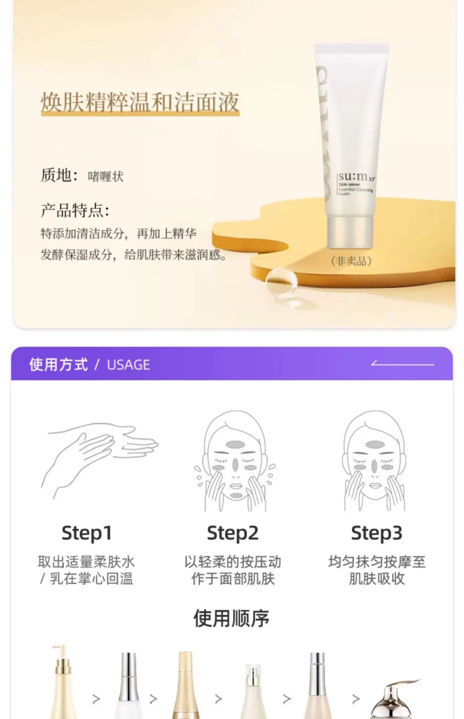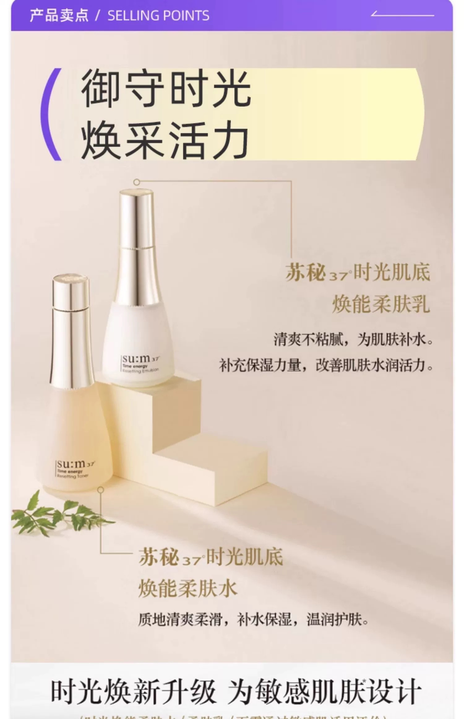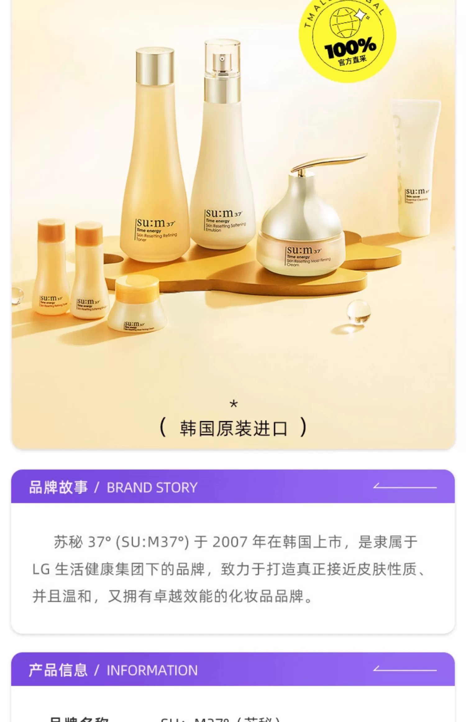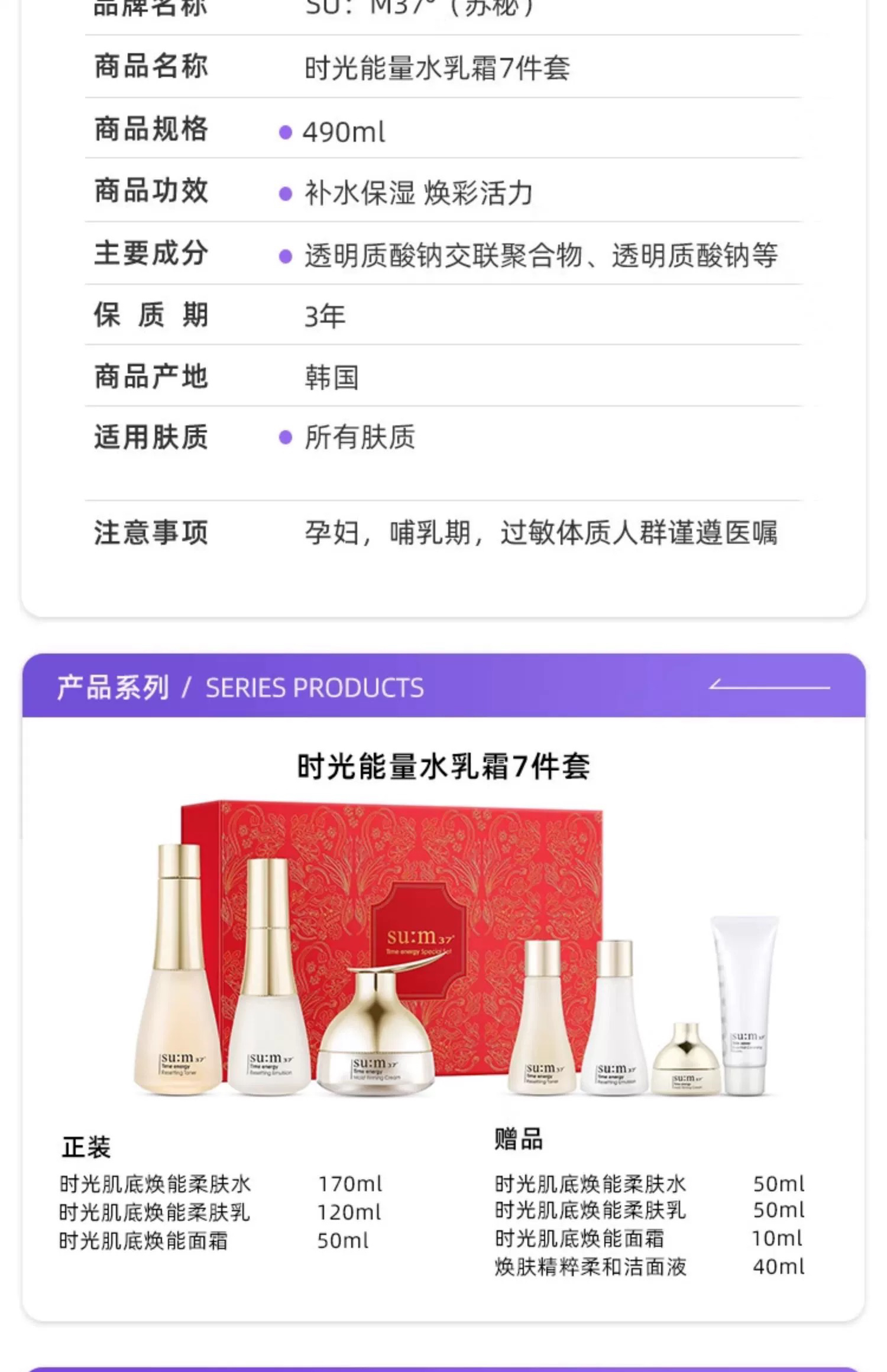韩国 苏秘sum呼吸37度 时光肌底酵素焕能7件套 套盒 (水170ml+50ml+乳液120ml+50ml+面霜50ml+10ml+洗面奶40ml)
