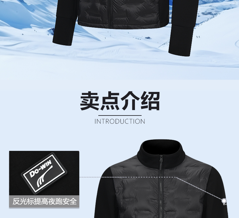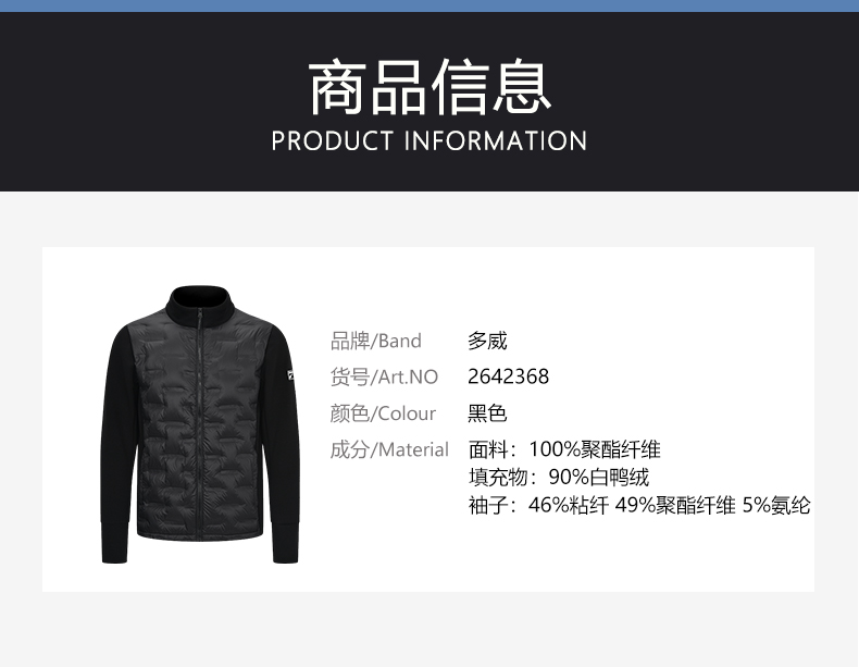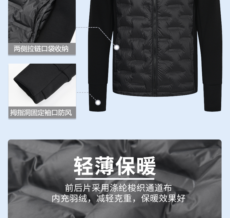 多威防风跑步运动白鸭绒男拼接羽绒服2642368