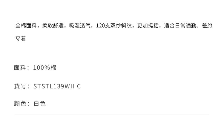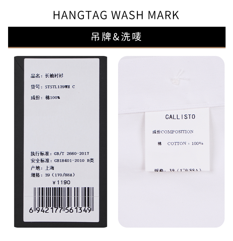 callisto白色全棉免烫长袖衬衫 STSTL139C