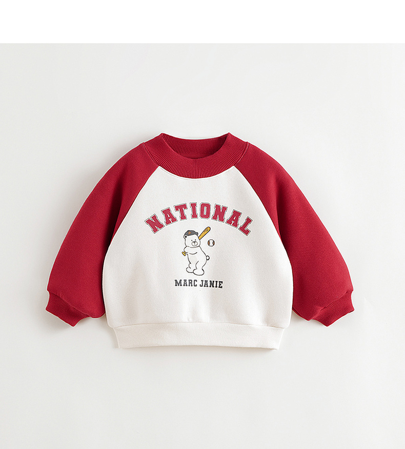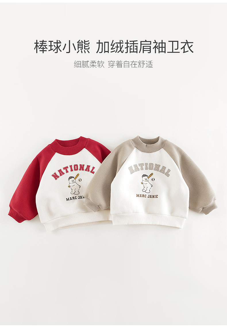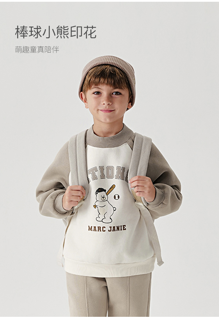 马克珍妮男童棒球小熊加绒运动卫衣儿童宽松上衣秋冬新款541922