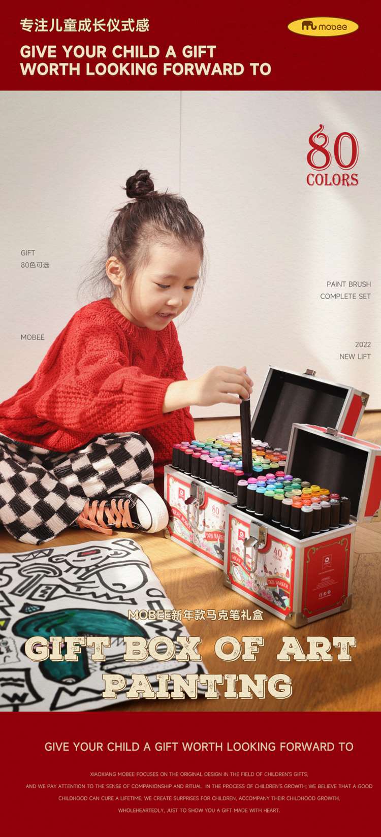 【mobee小象莫贝】2023新年款儿童专用马克笔礼盒 40色马克笔【包邮直发】