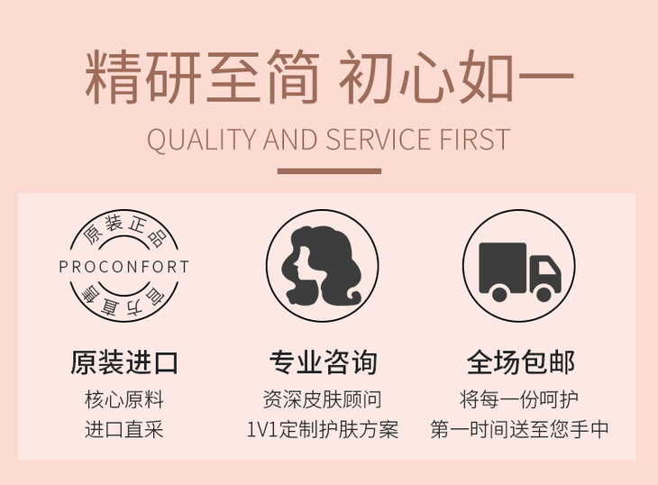 - 专业解决肌肤根源问题,调理肌肤至健康、平衡状态,始终呈现光泽、细腻、白皙的肌肤。同时,PROCONFORT解密大牌技术,剔除品牌溢价,为万千女性打造用的起的顶级配方。