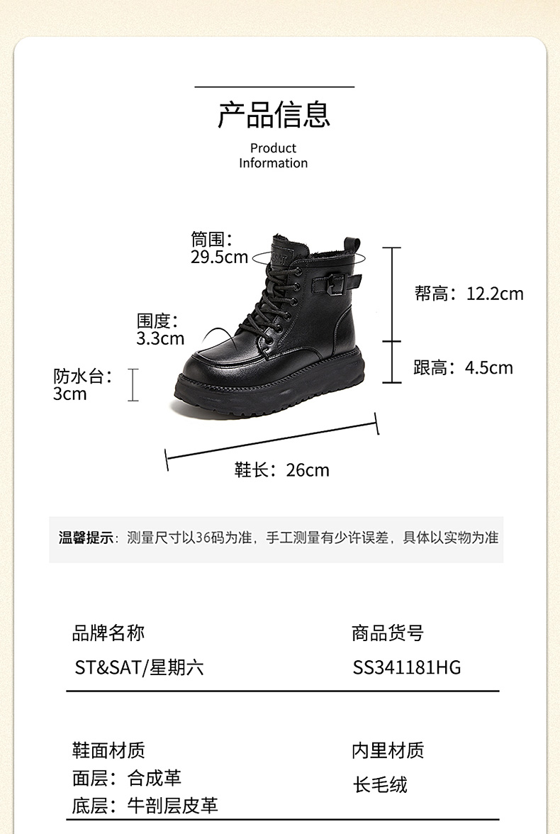 星期六休闲百搭加绒厚底保暖马丁靴SS341181HG