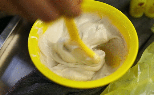 混合均匀后是像珍珠光泽的膏体,不算特别稠,也没有染发剂常见的刺鼻气味,闻起来像柠檬混合白醋的味道。