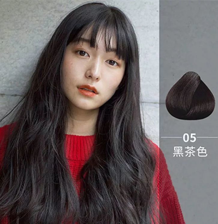 如果你不想太改变自己的发色,也可以试试5号黑茶色。它整体感觉比黑色和深棕色都更轻盈一些。几乎所有人都能驾驭,尤其适合不能太高调的学生党。