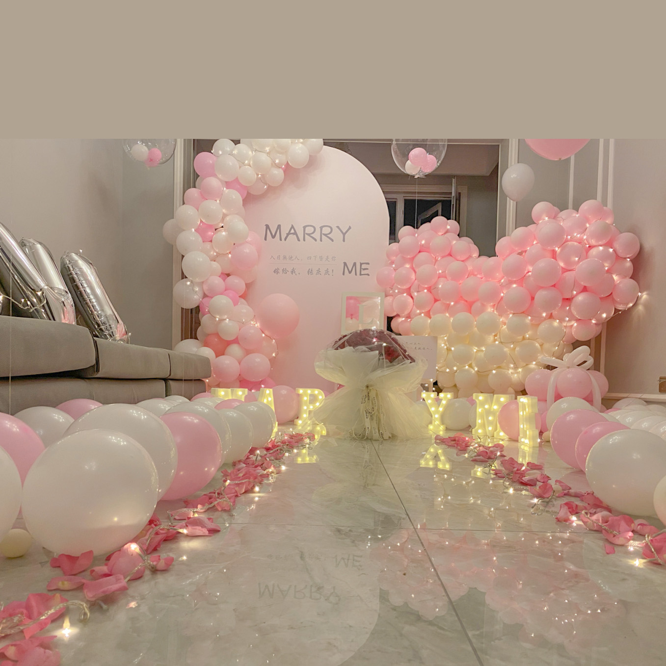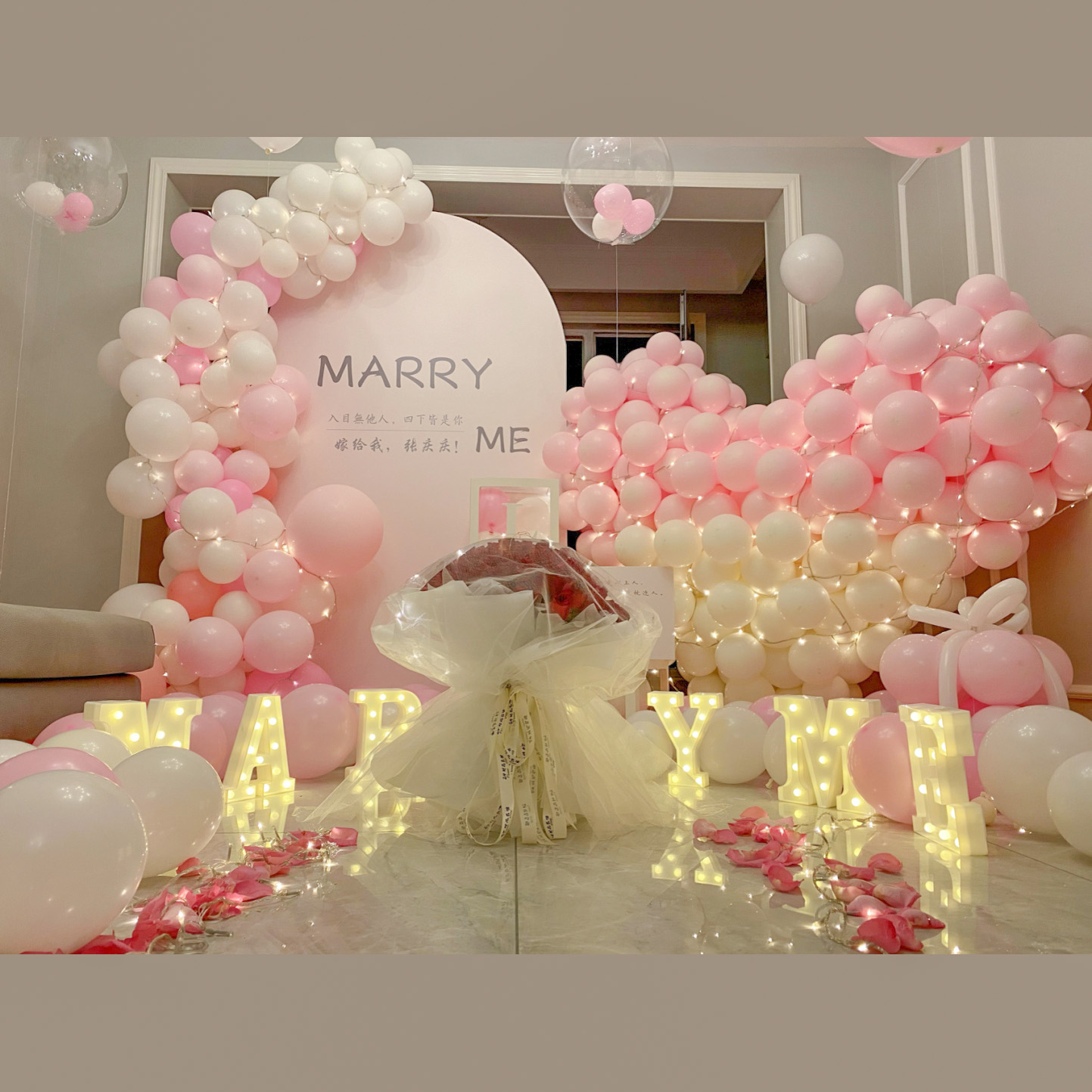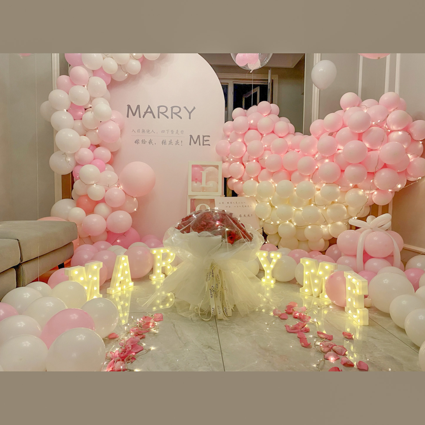 「爱的拥抱」-粉嫩色系求婚布置