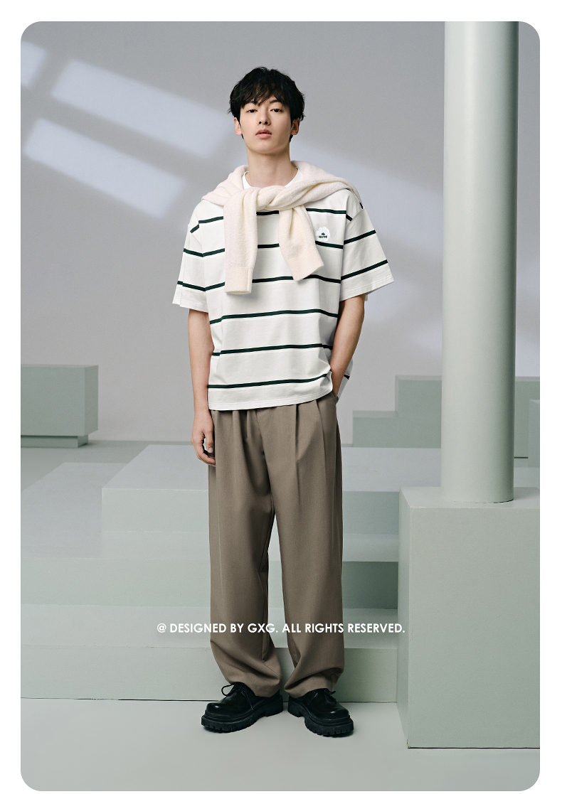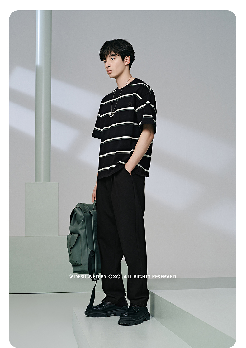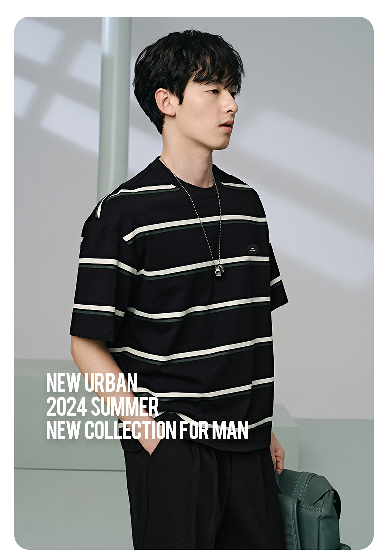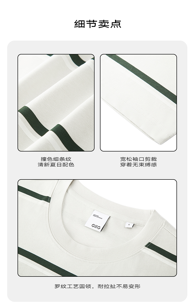 GXG男装 235g重磅条纹设计简约宽松休闲短袖T恤男士 夏季热卖