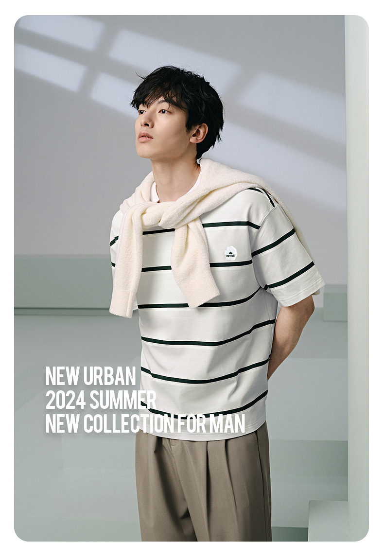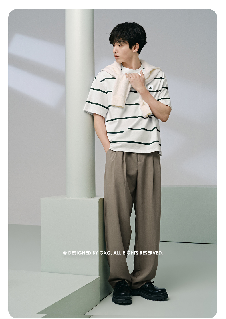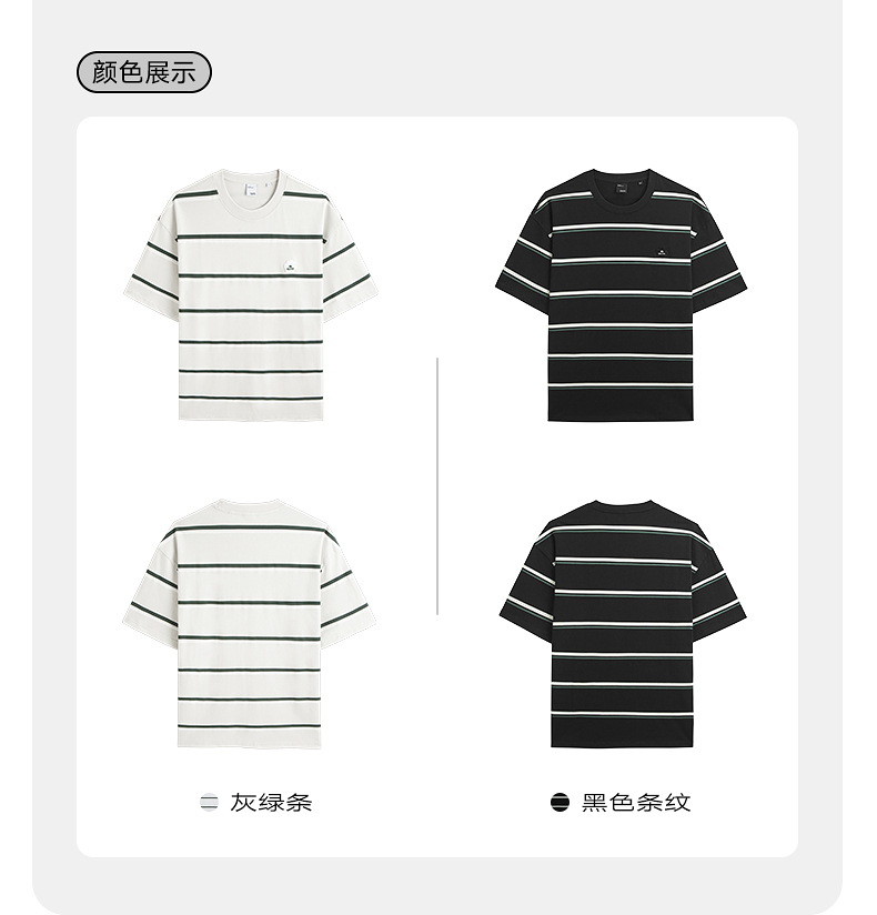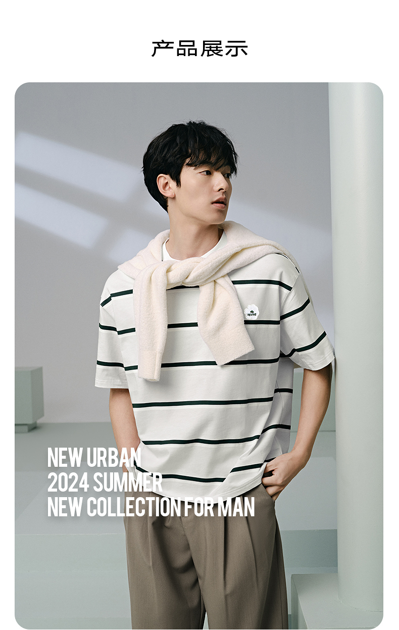 GXG男装 235g重磅条纹设计简约宽松休闲短袖T恤男士 夏季热卖