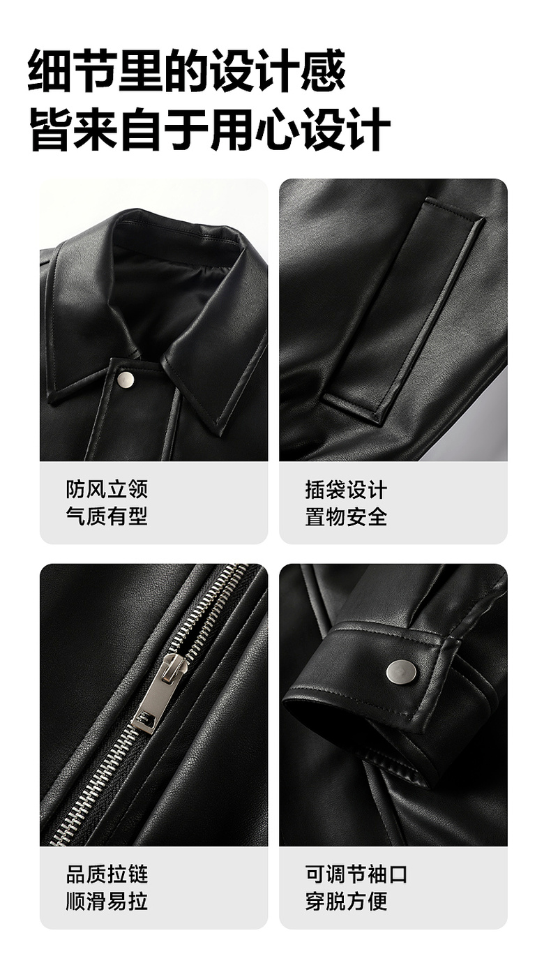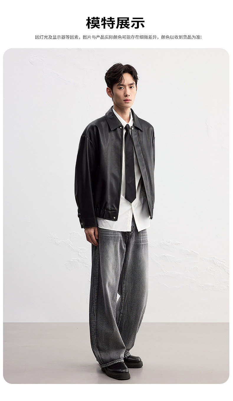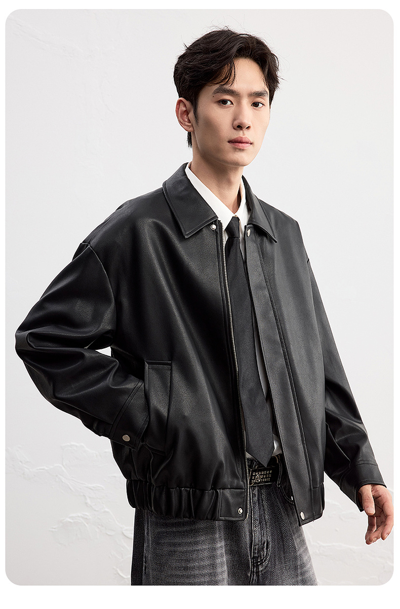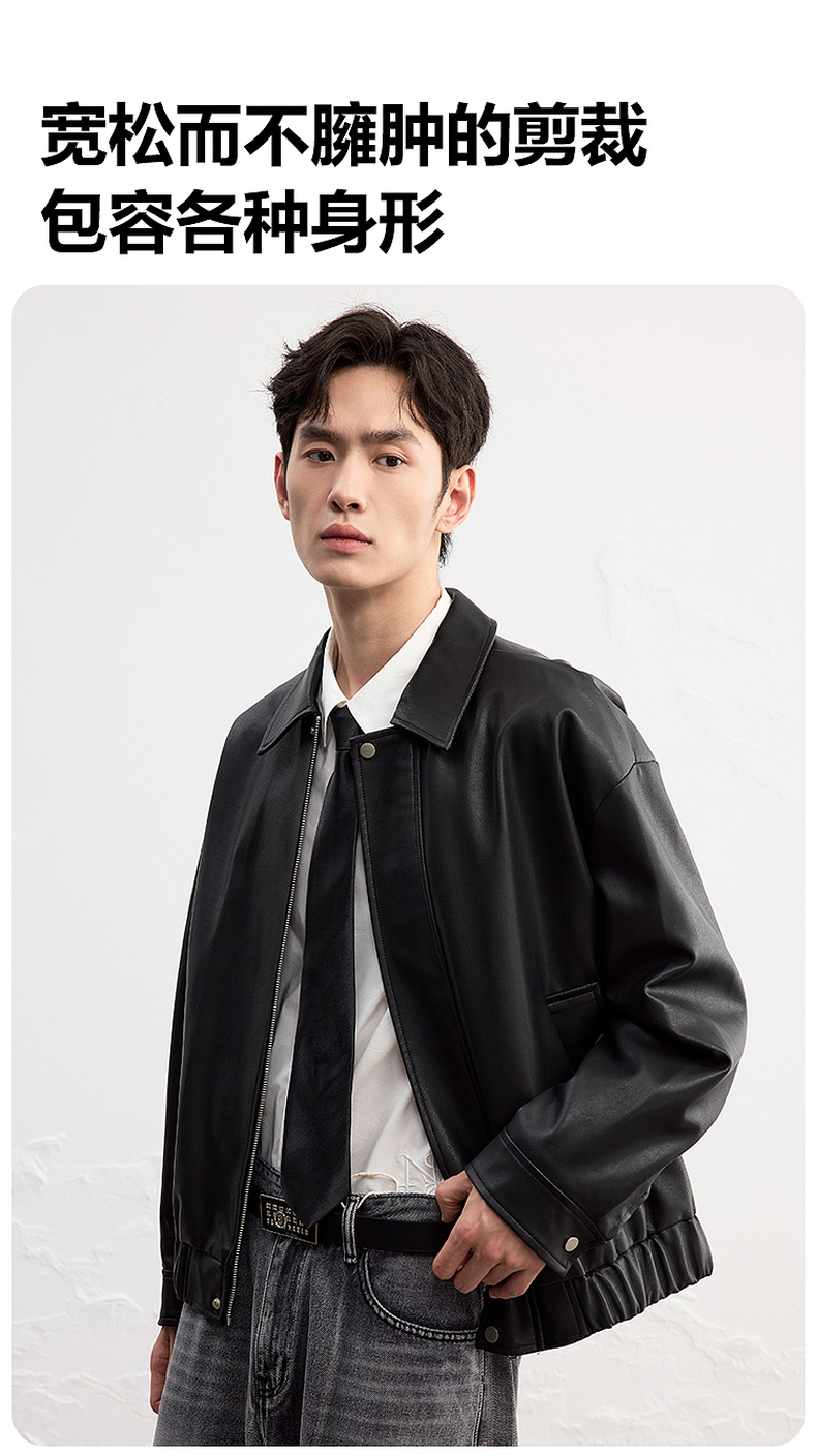 GXG男装25秋季经典简约百搭pu皮夹克防风休闲易打理男式翻领外套K&C