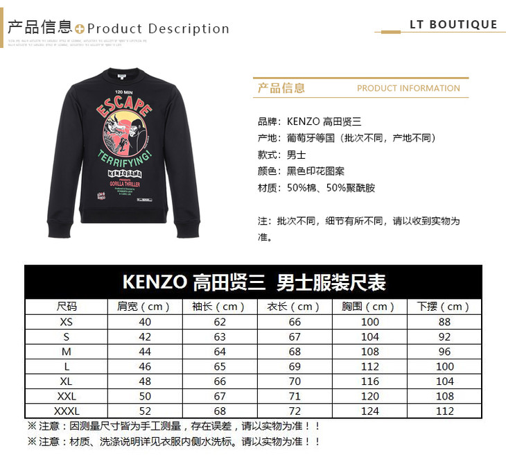 KENZO 高田贤三 通用 百搭 黑色 男卫衣 黑色 F865 SW194 4MA 99