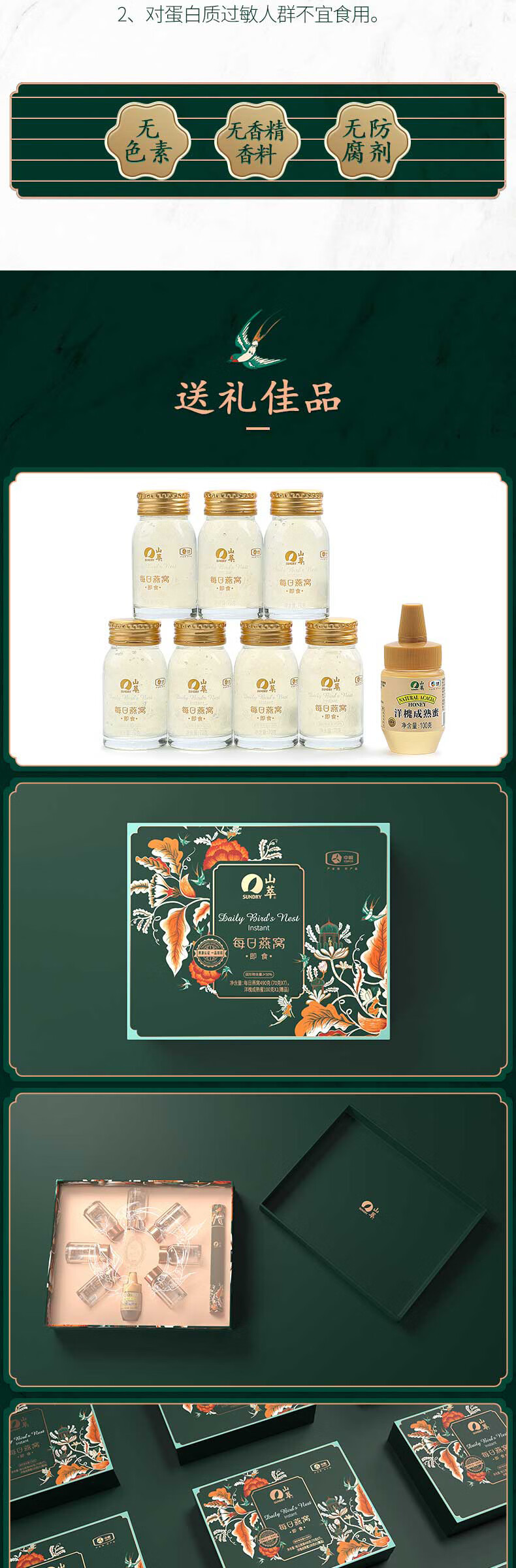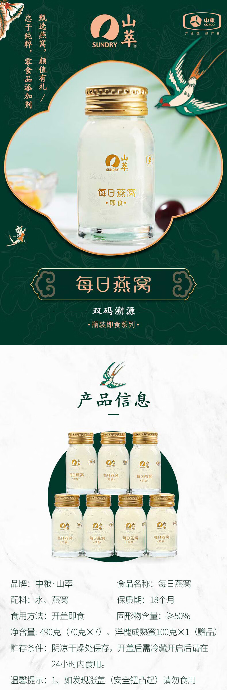 山萃即食燕窝礼盒490g(70克*7瓶)冲饮即食 金丝燕溯源补品 即食燕窝