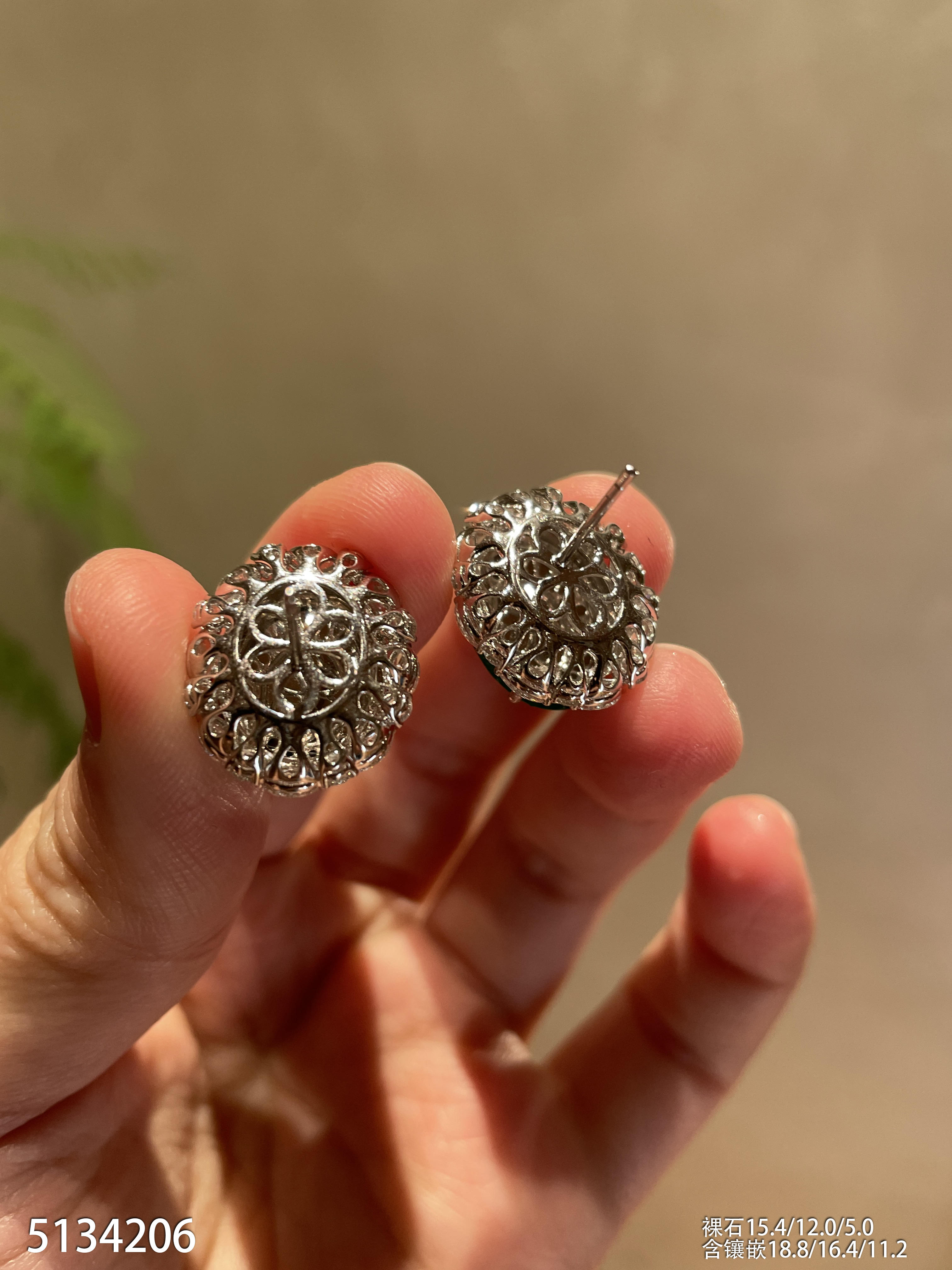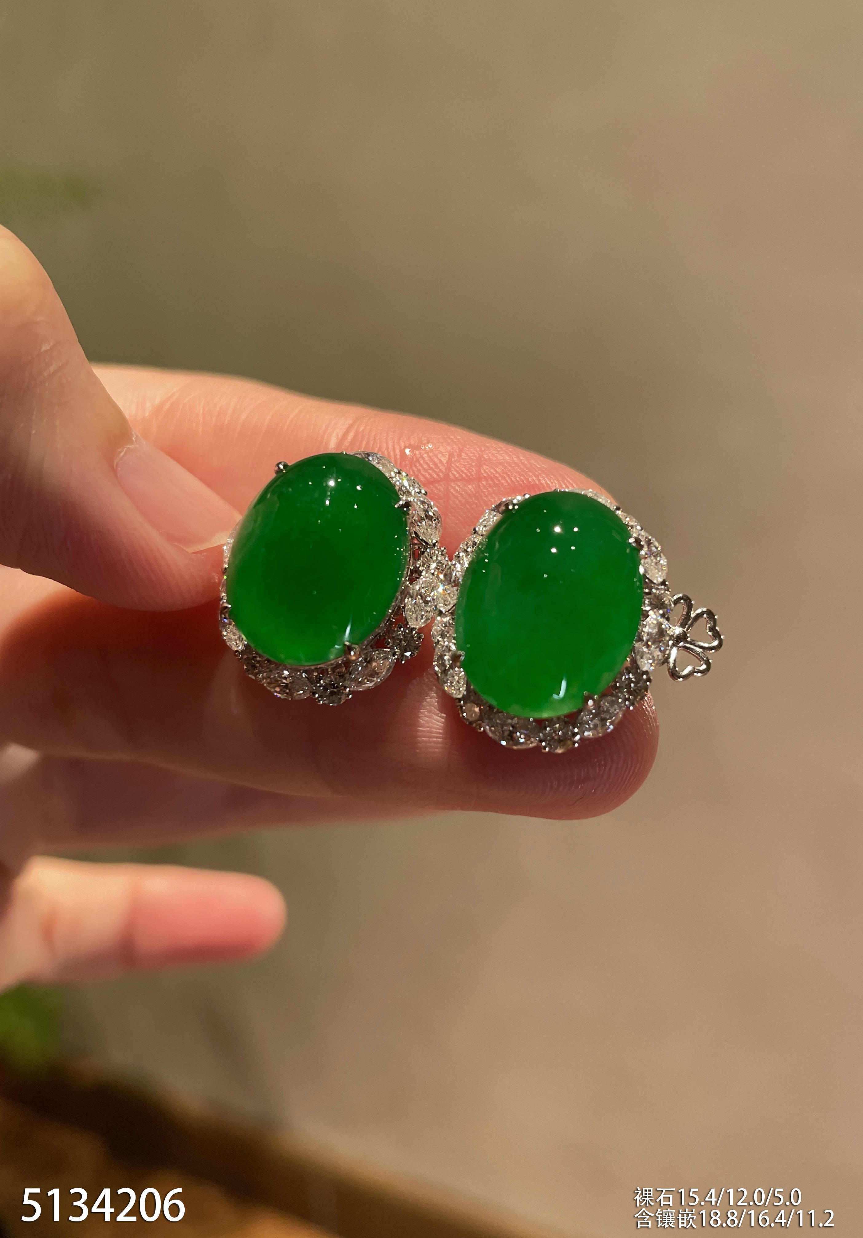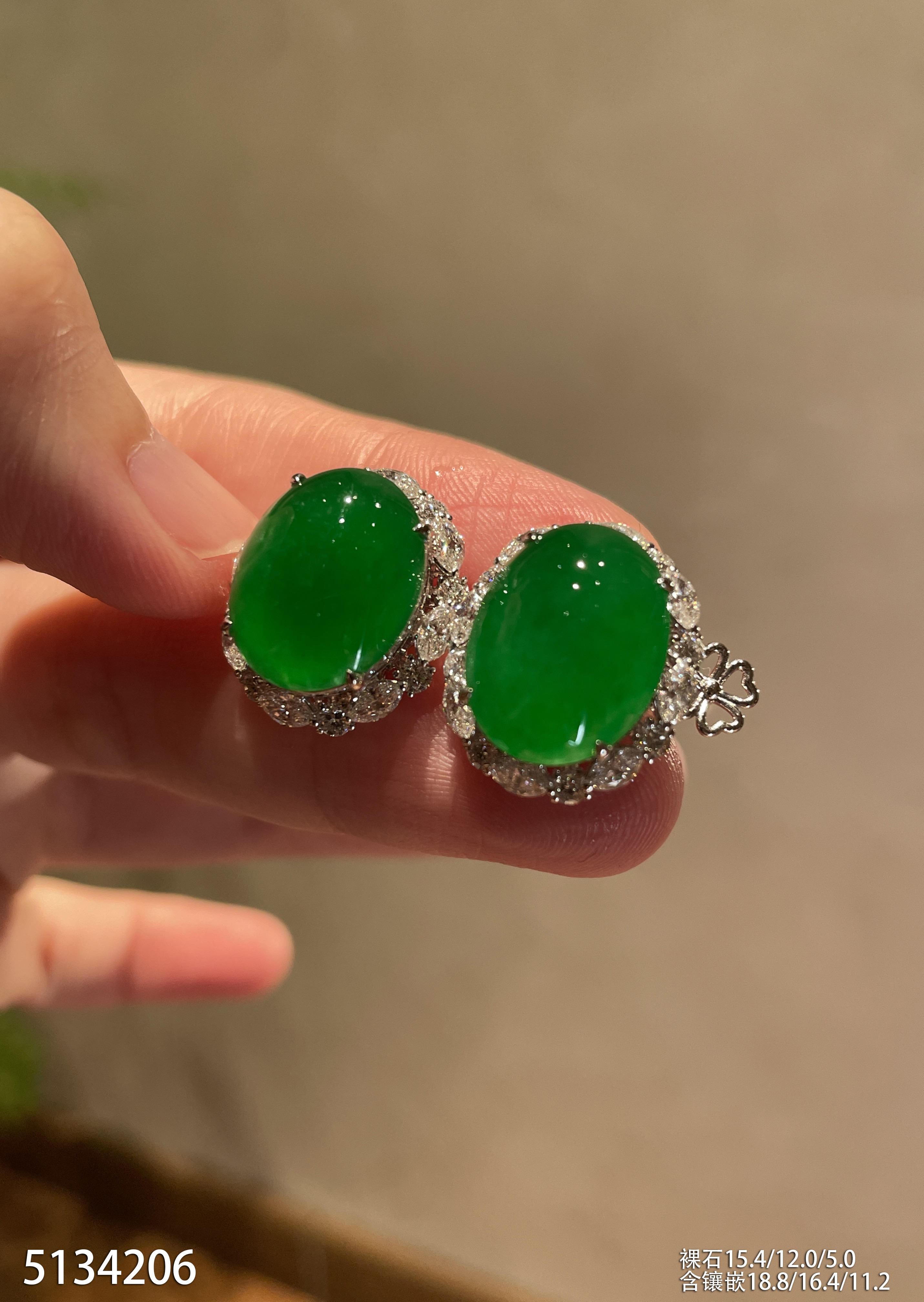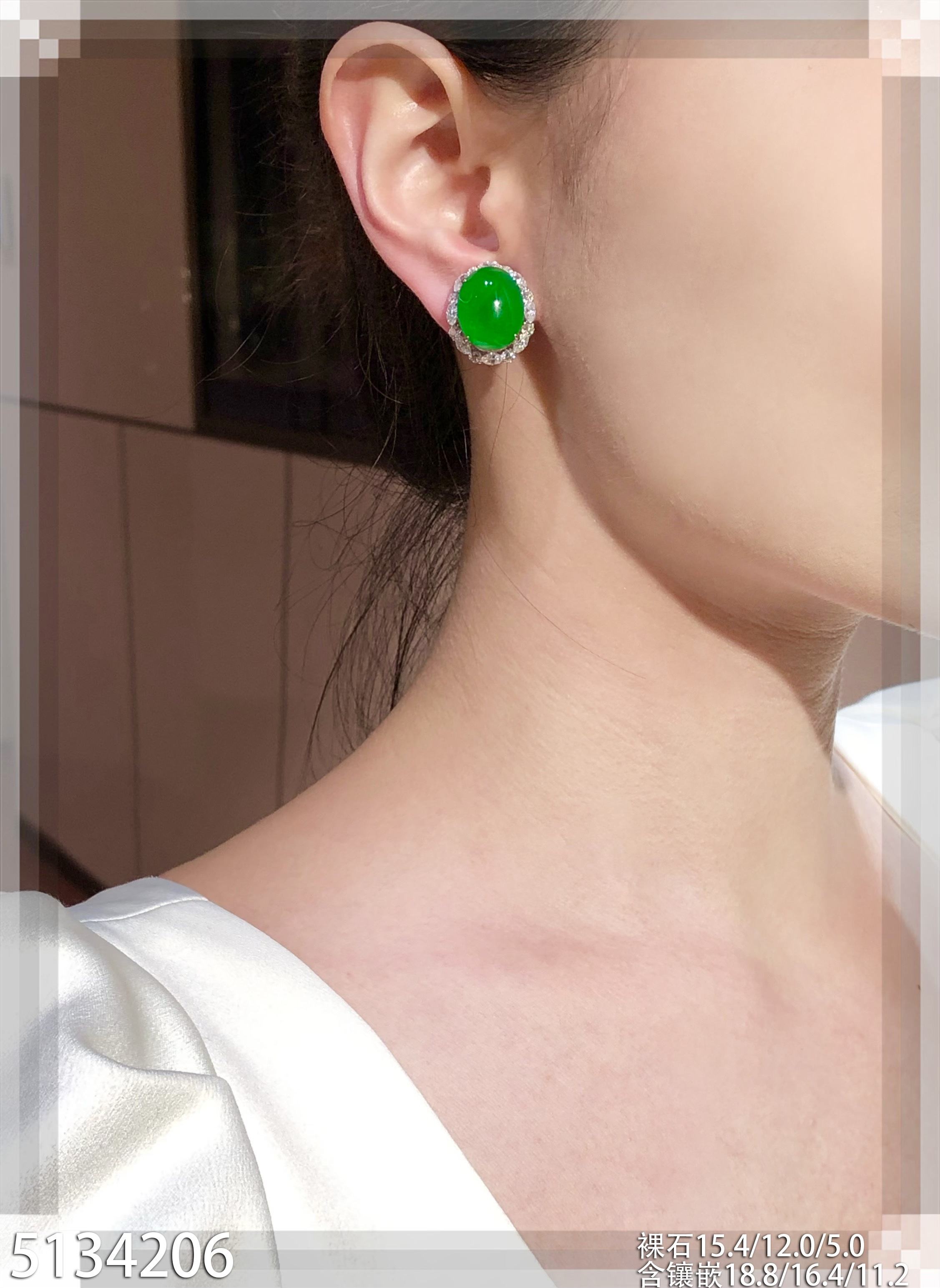 高冰种艳绿蛋面耳钉【6310503】具体价格微信咨询