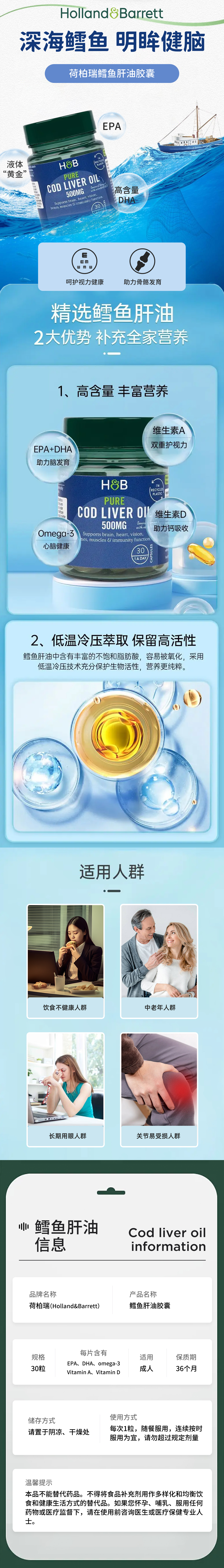 【商超同款】英国荷柏瑞深海鳕鱼肝油软胶囊30粒/瓶