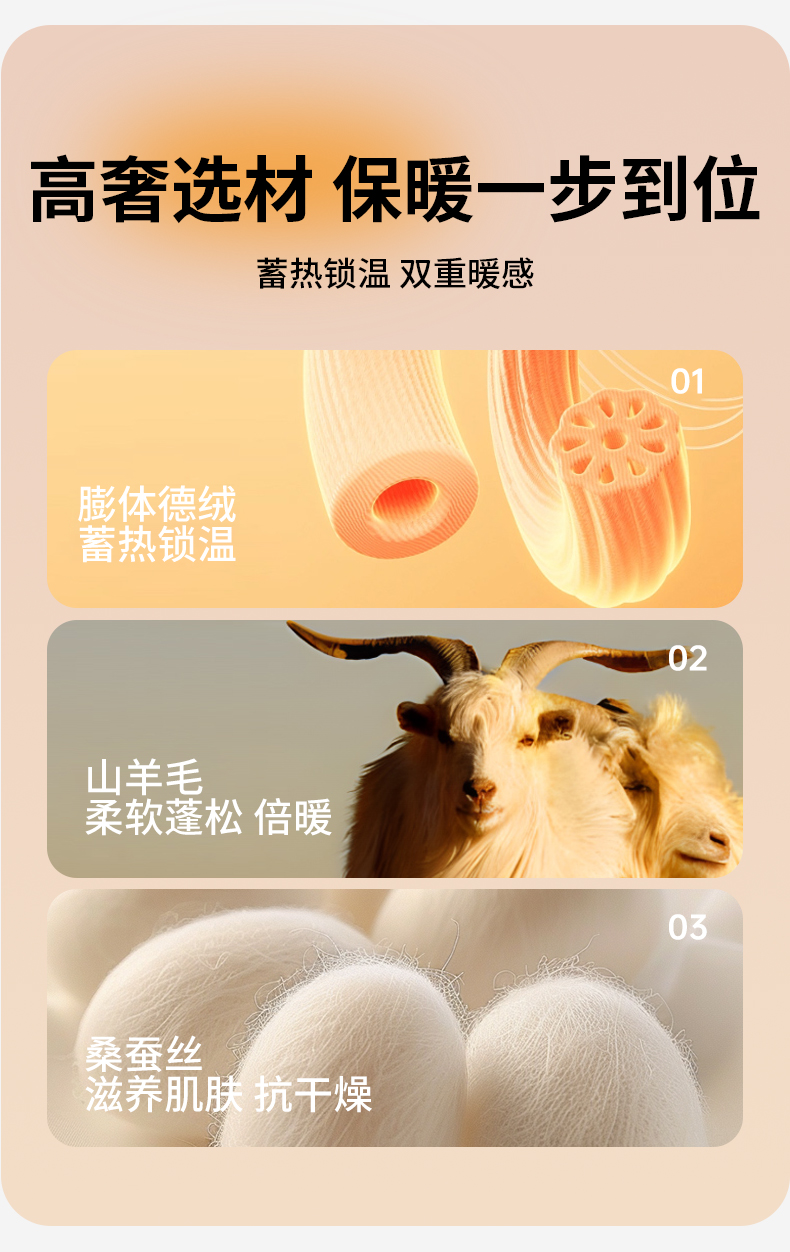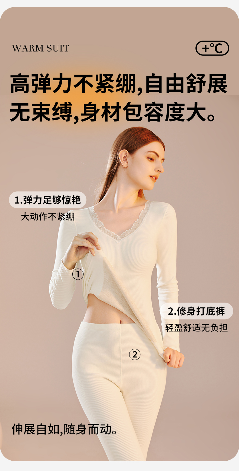 【7A抗菌】洁丽雅保暖内衣套装绵羊毛蓄热桑蚕丝润肤秋冬款打底秋衣秋裤