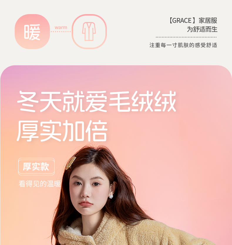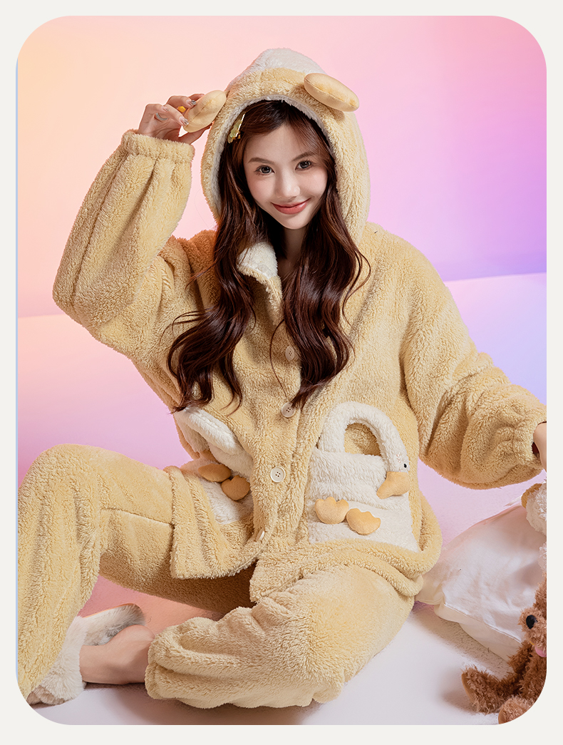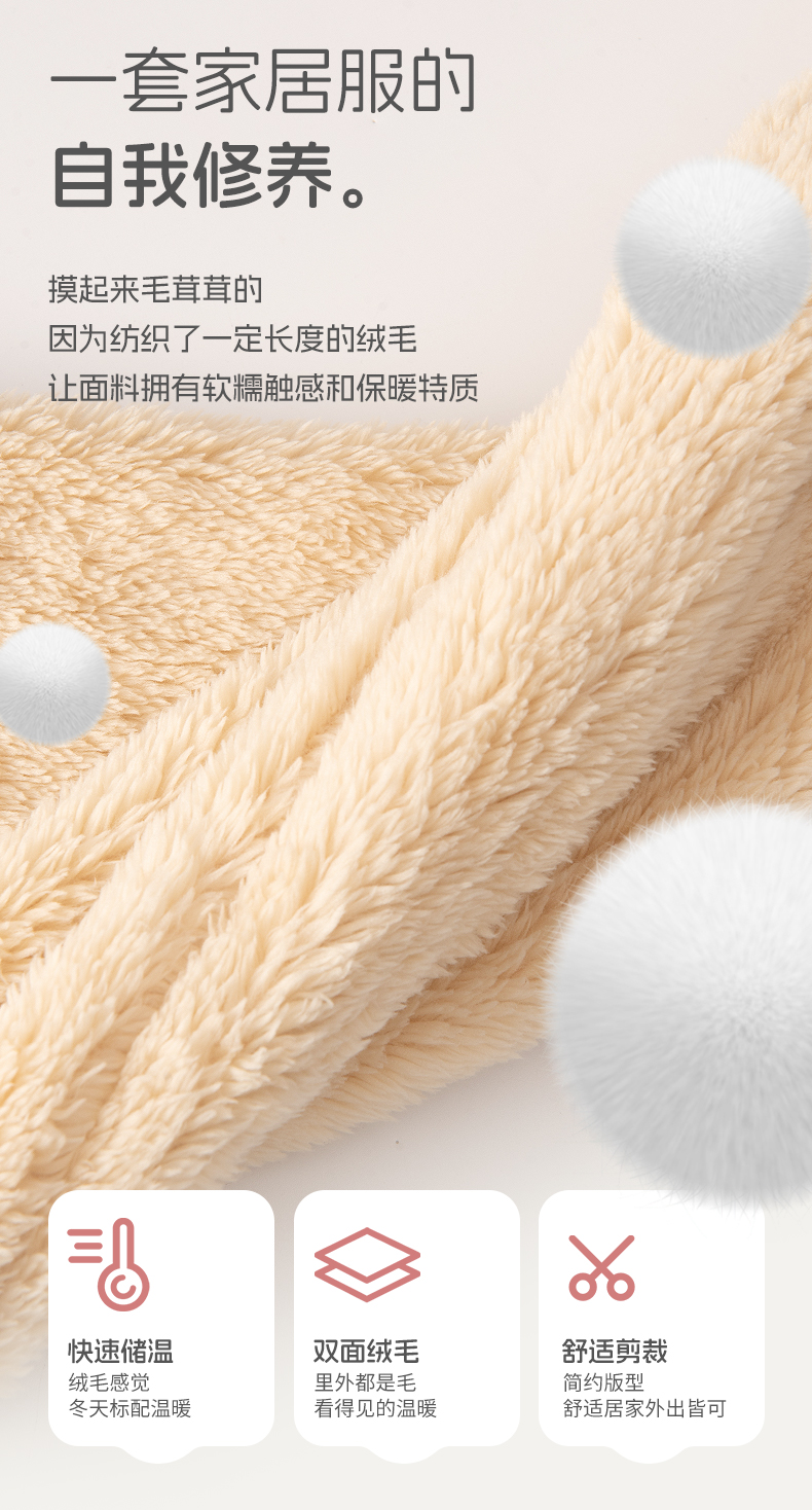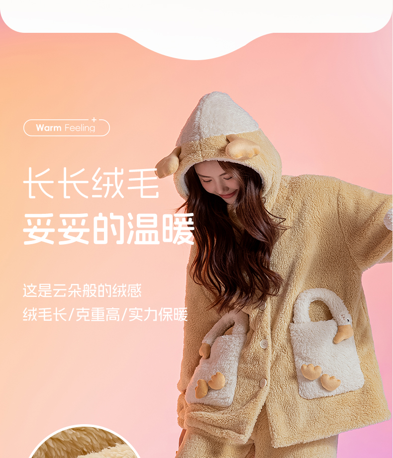 洁丽雅新款正品半边绒家居服甜美少女柔软舒适蓄热保暖睡衣套装女