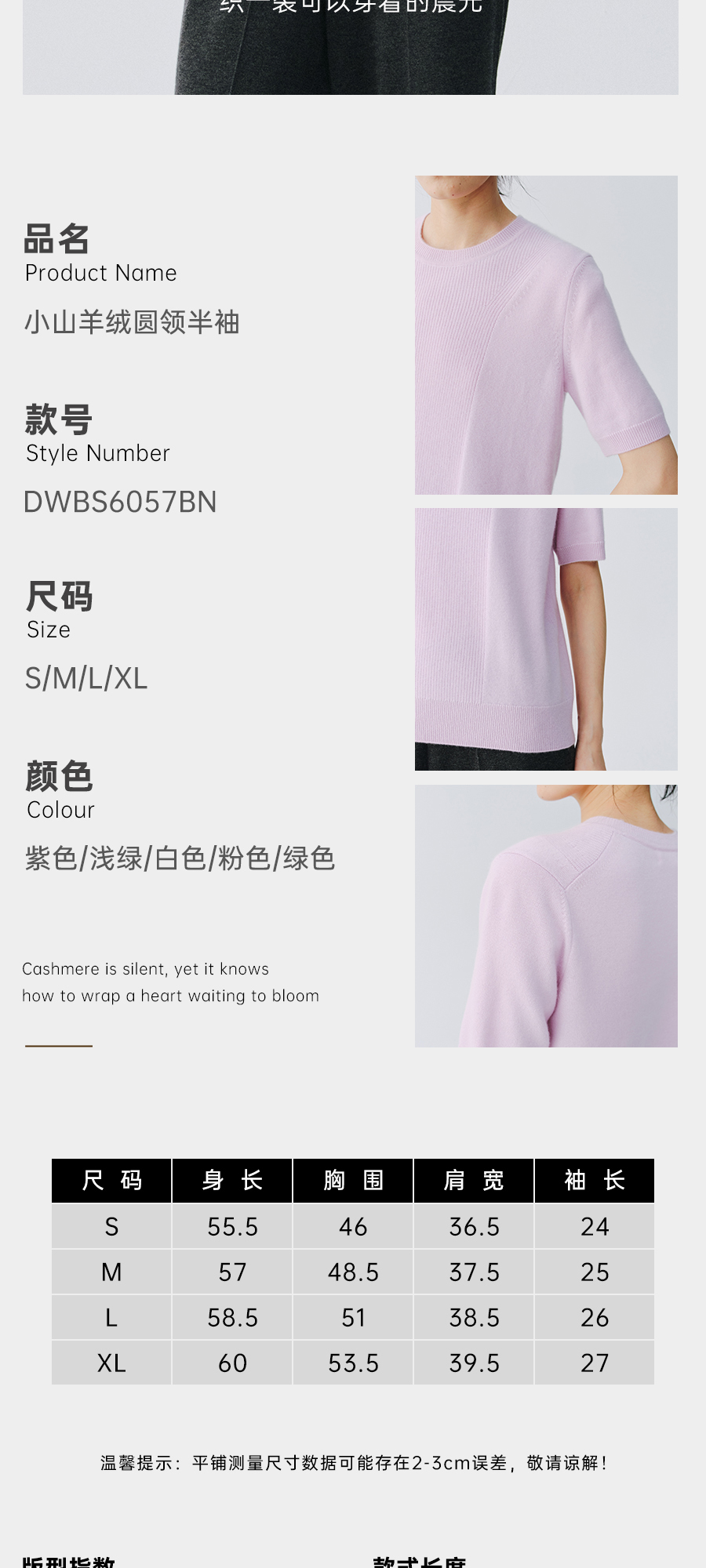 东黎 • 复苏的呼吸 小山羊绒女士圆领半袖 6057