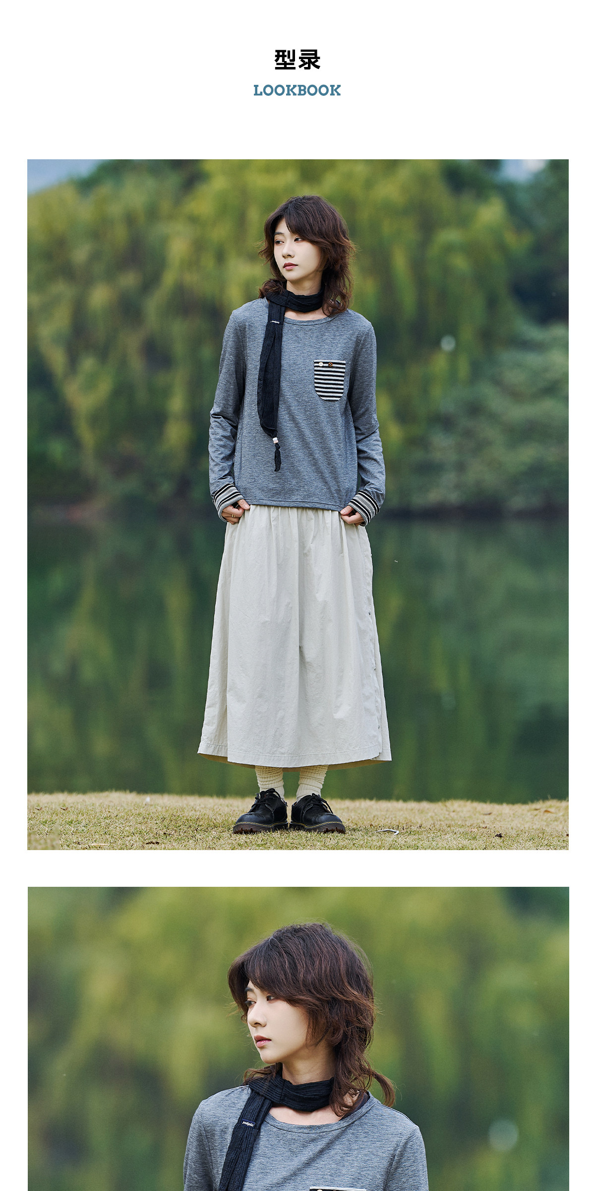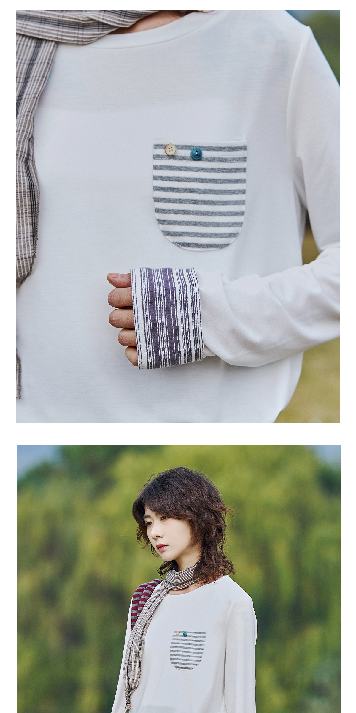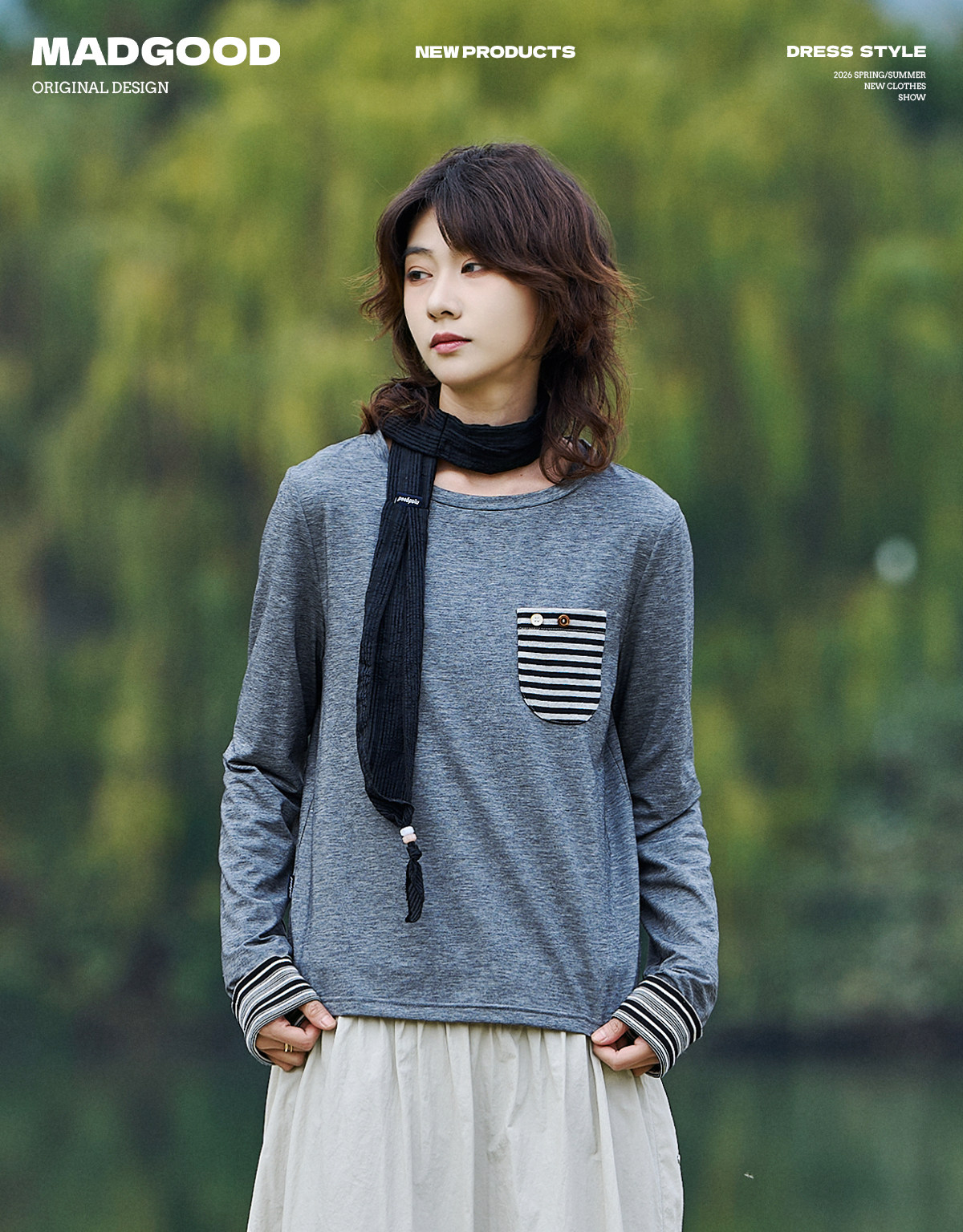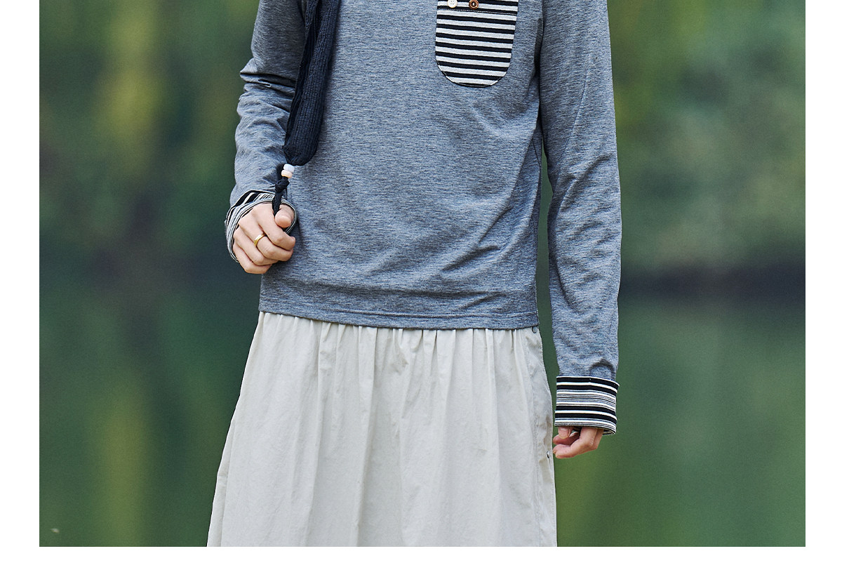 马得工地/MDGDTX212072/袖口翻折拼接条纹长袖T恤