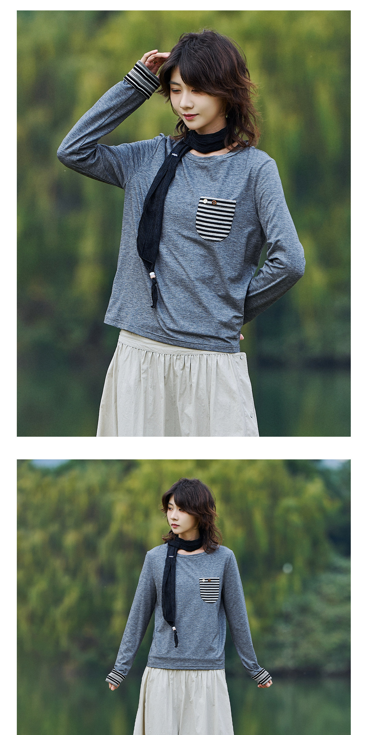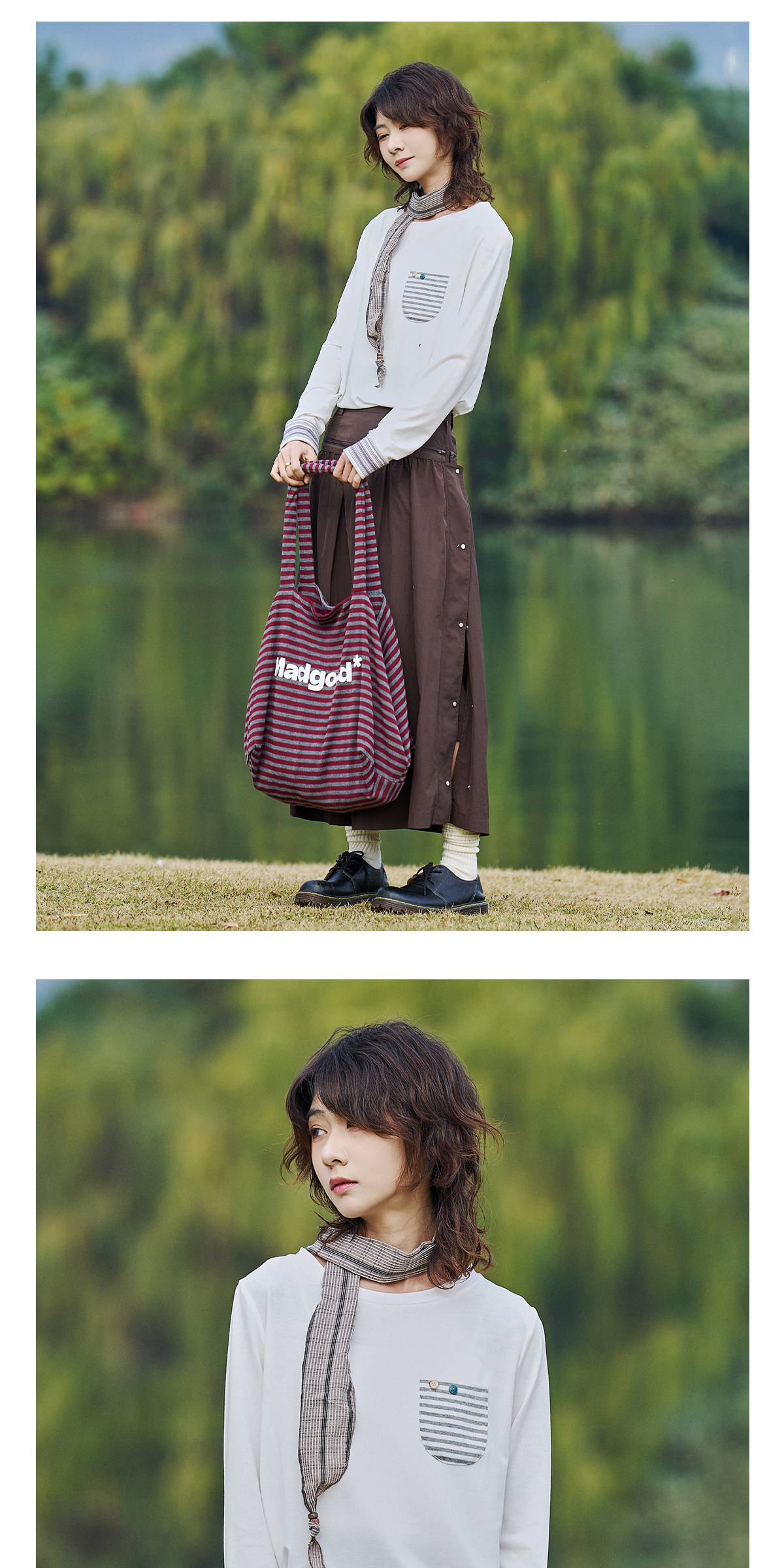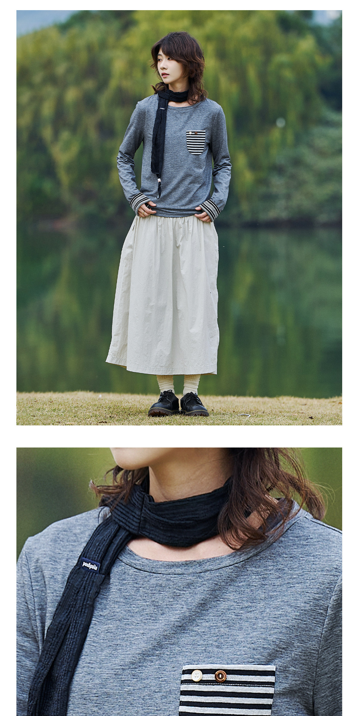 马得工地/MDGDTX212072/袖口翻折拼接条纹长袖T恤